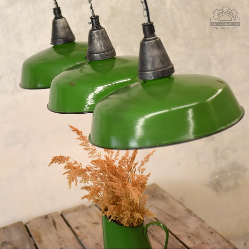 Bulgarian enamel lamps manufactured by ELKOOP Sofia in 1967. The ceramic enamel has been kept in a very nice condition. Diameter 41cm, length of the hanging lamp with a 200cm braided cable.