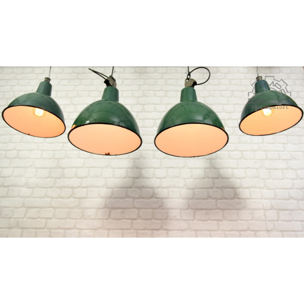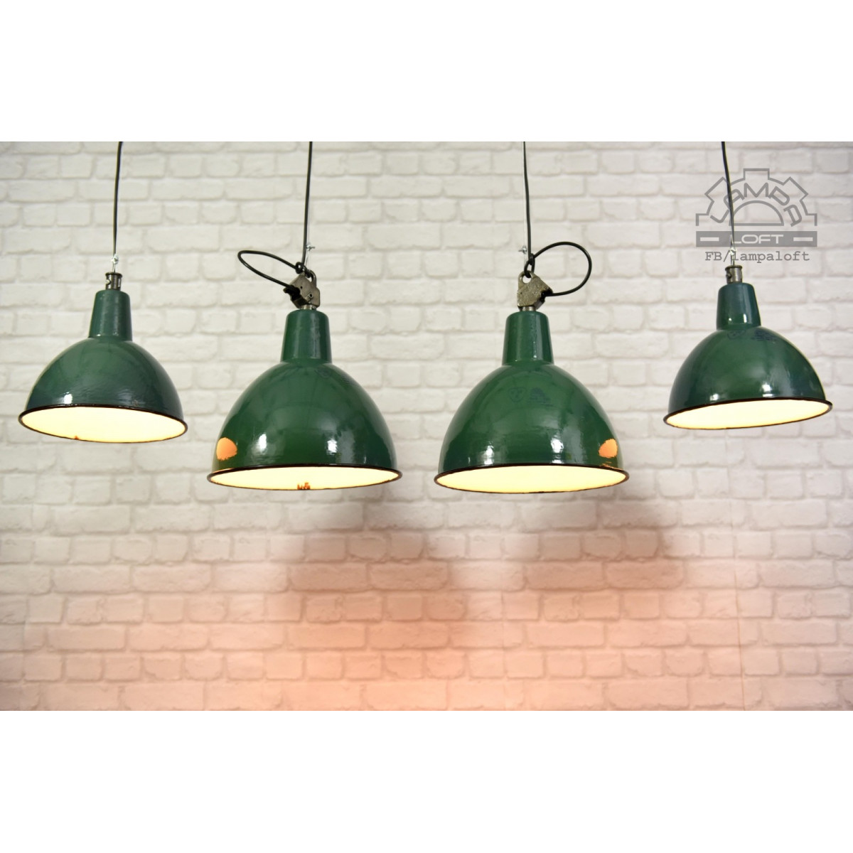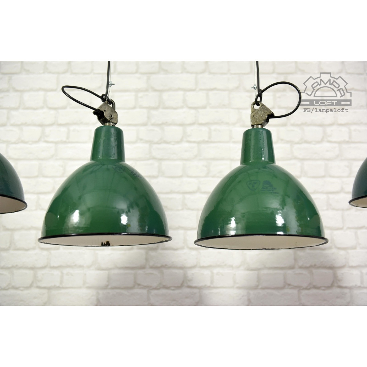 Odrestaurowane lampy emaliowane z lat 60' model OBg-2 wyprodukowane przez Zakłady Mazurskie Zakłady Aparatury Oświetleniowej A-23 w Wilkasach.