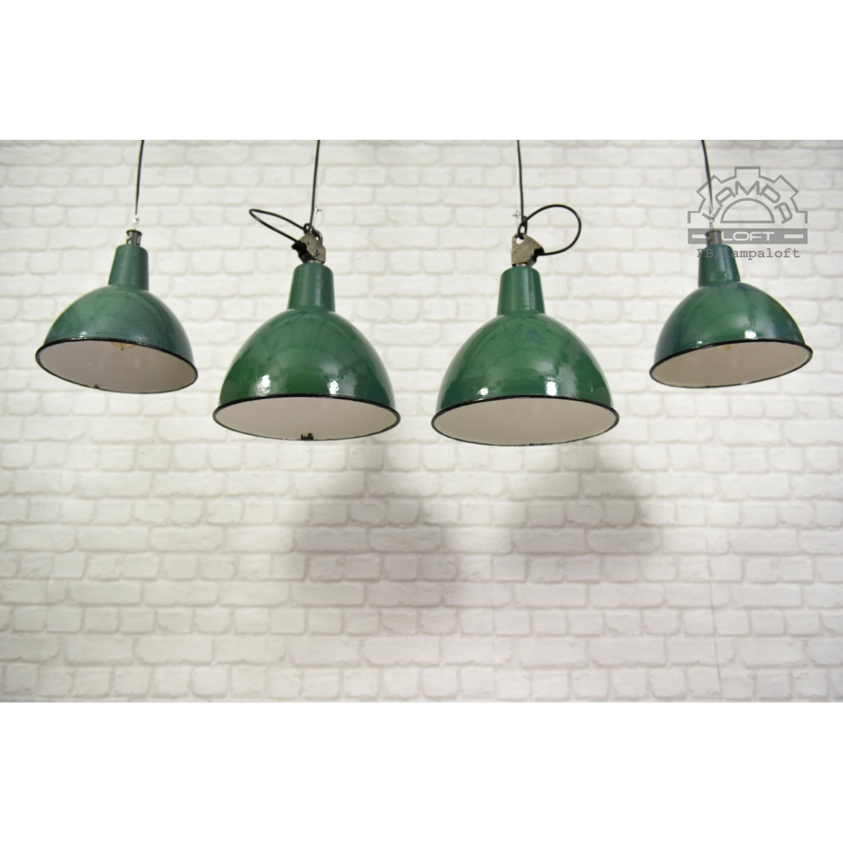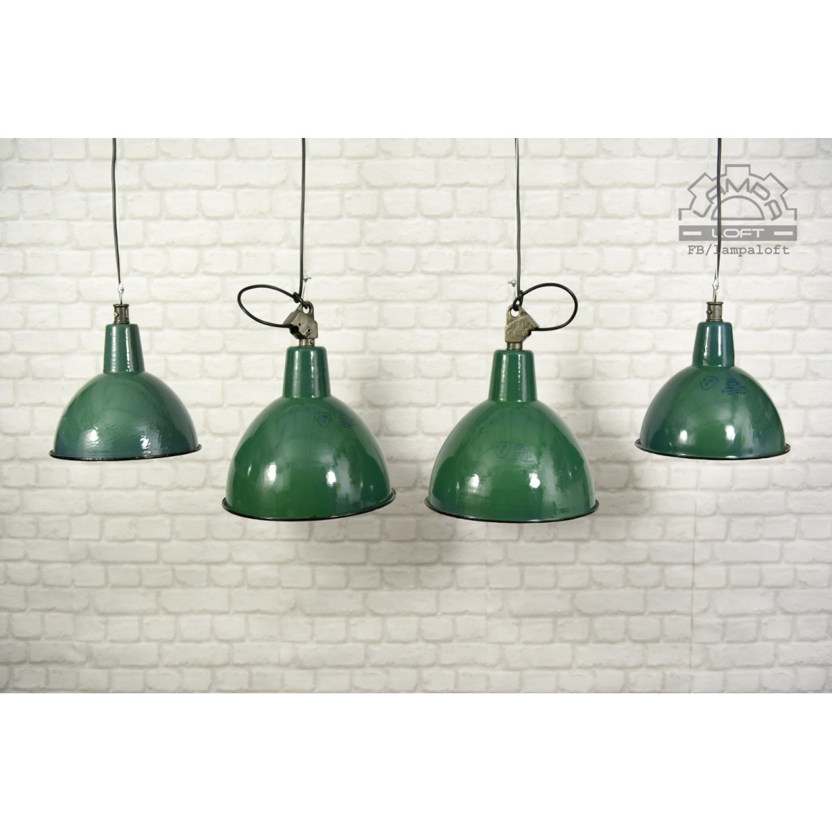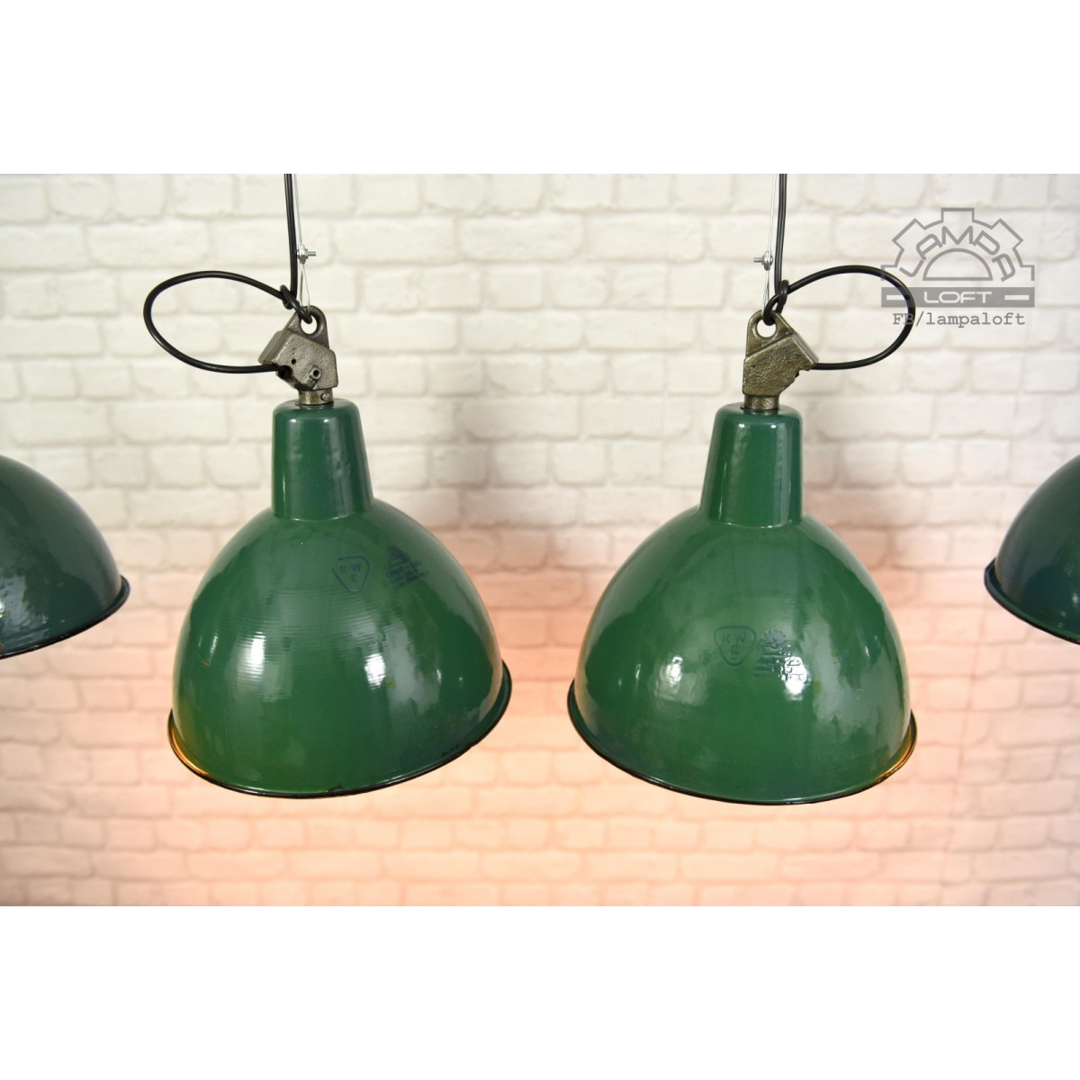 Odrestaurowane lampy emaliowane z lat 60' model OBg-2 wyprodukowane przez Zakłady Mazurskie Zakłady Aparatury Oświetleniowej A-23 w Wilkasach.