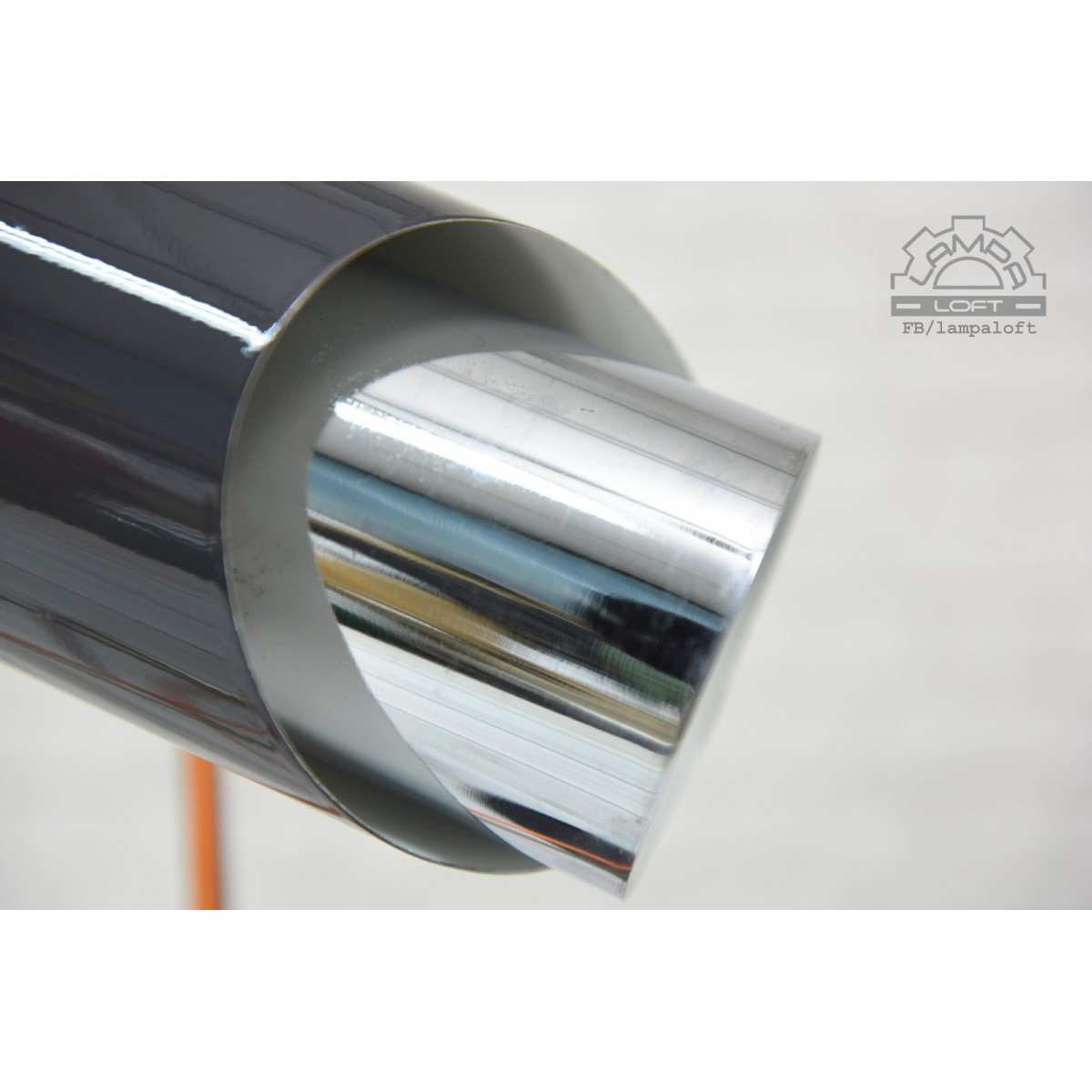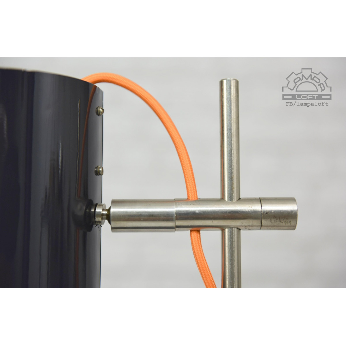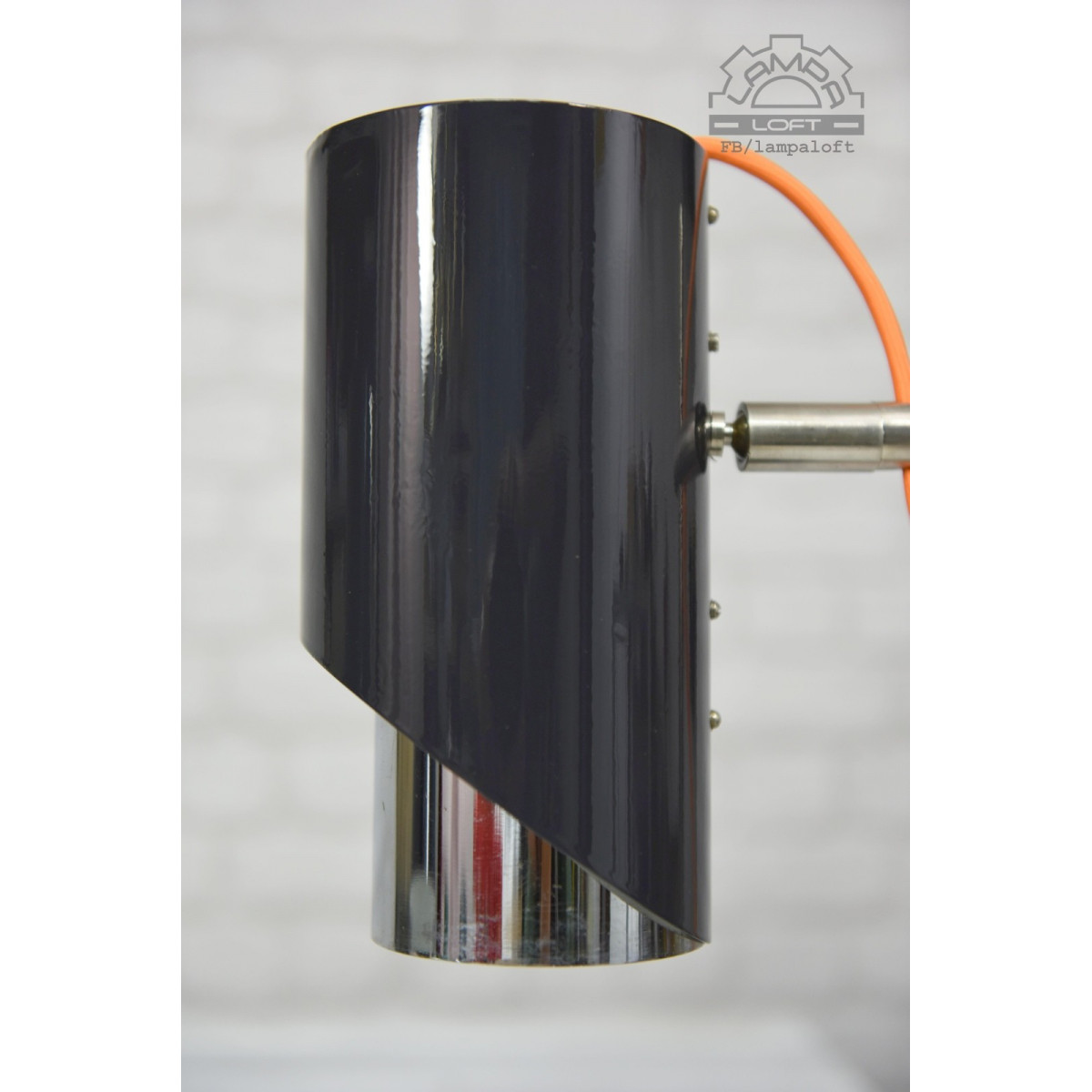 Lampy w kolorze antracytowym. Pomarańczowe przewody w oplocie.