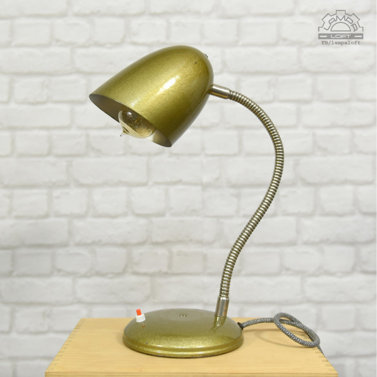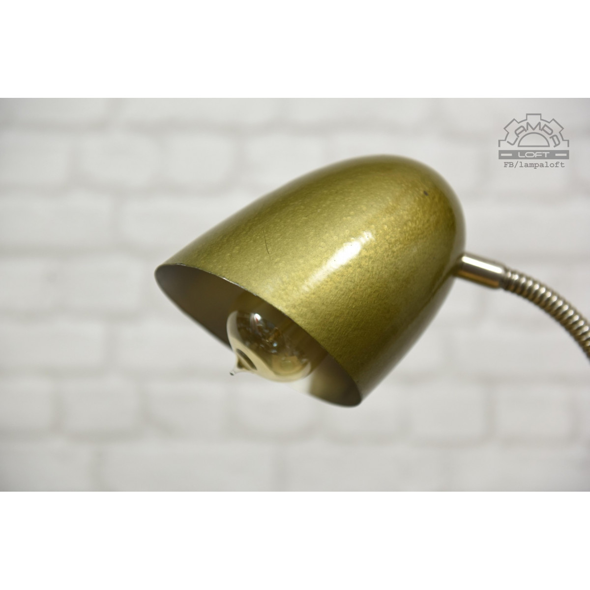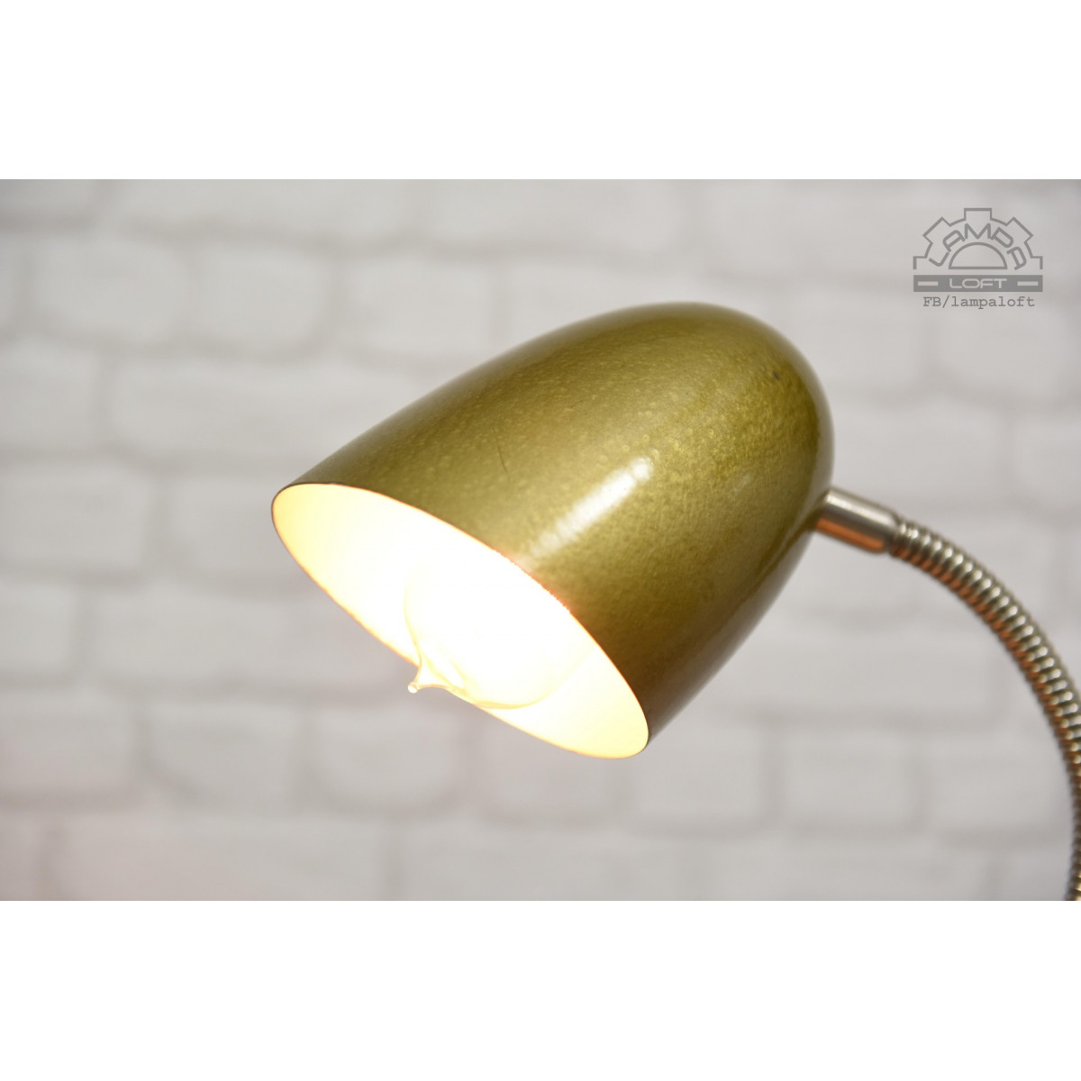 Lampa przywrócona do życia. Wyprodukowana w latach 70' przez R.S.S.E. Rzemieślnicza Spółdzielnia Specjalistyczna Elektryków w Warszawie. Zachowane powłoki lakiernicze w oryginalnym stanie. Nowa instalacja elektryczna. Przewód w oplocie bawełniano-lnianym 140cm. Podstawa średnicy 16cm, klosz 13cm, wysokość 50cm. Oprawka E27 na zwykłą żarówkę max.75W.