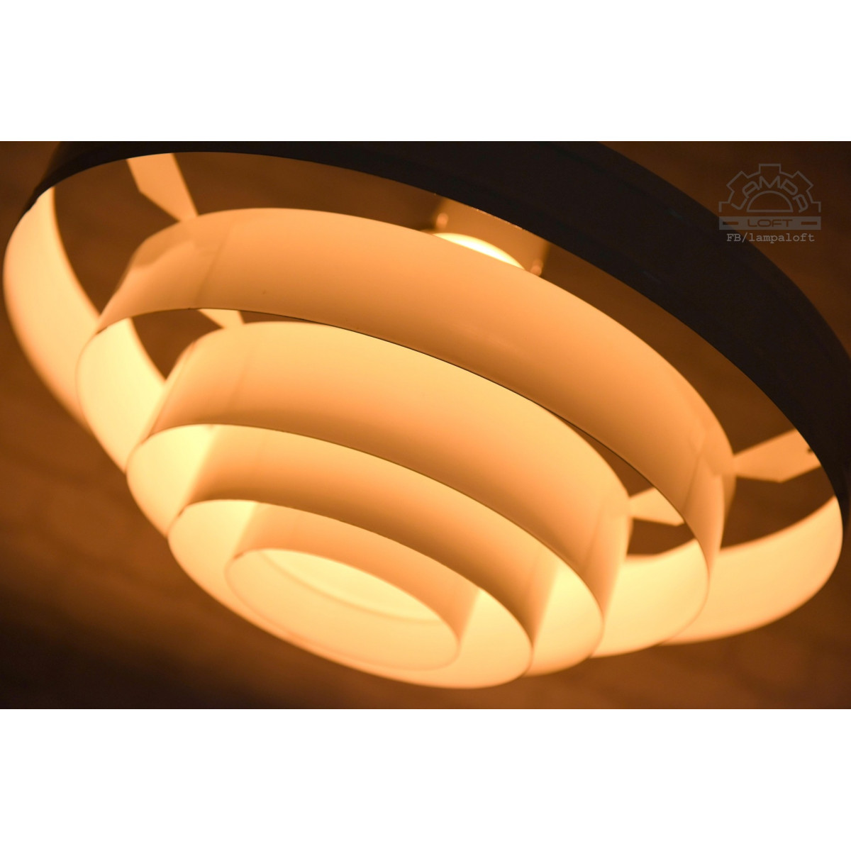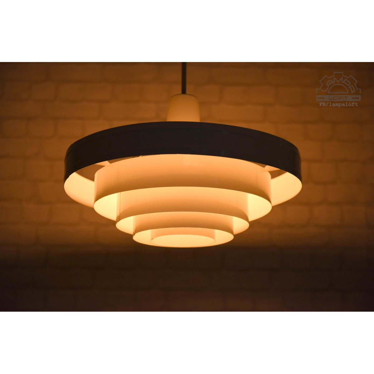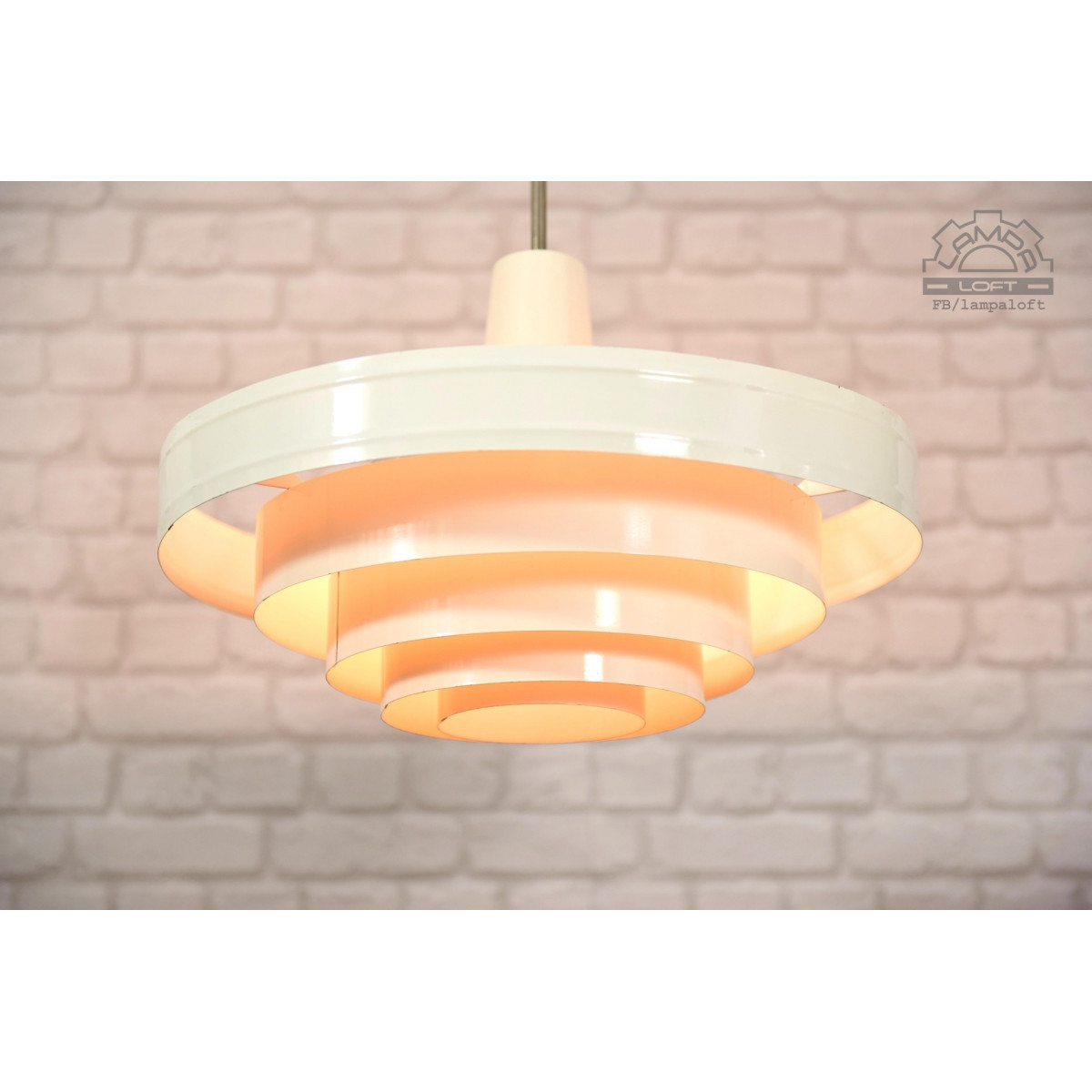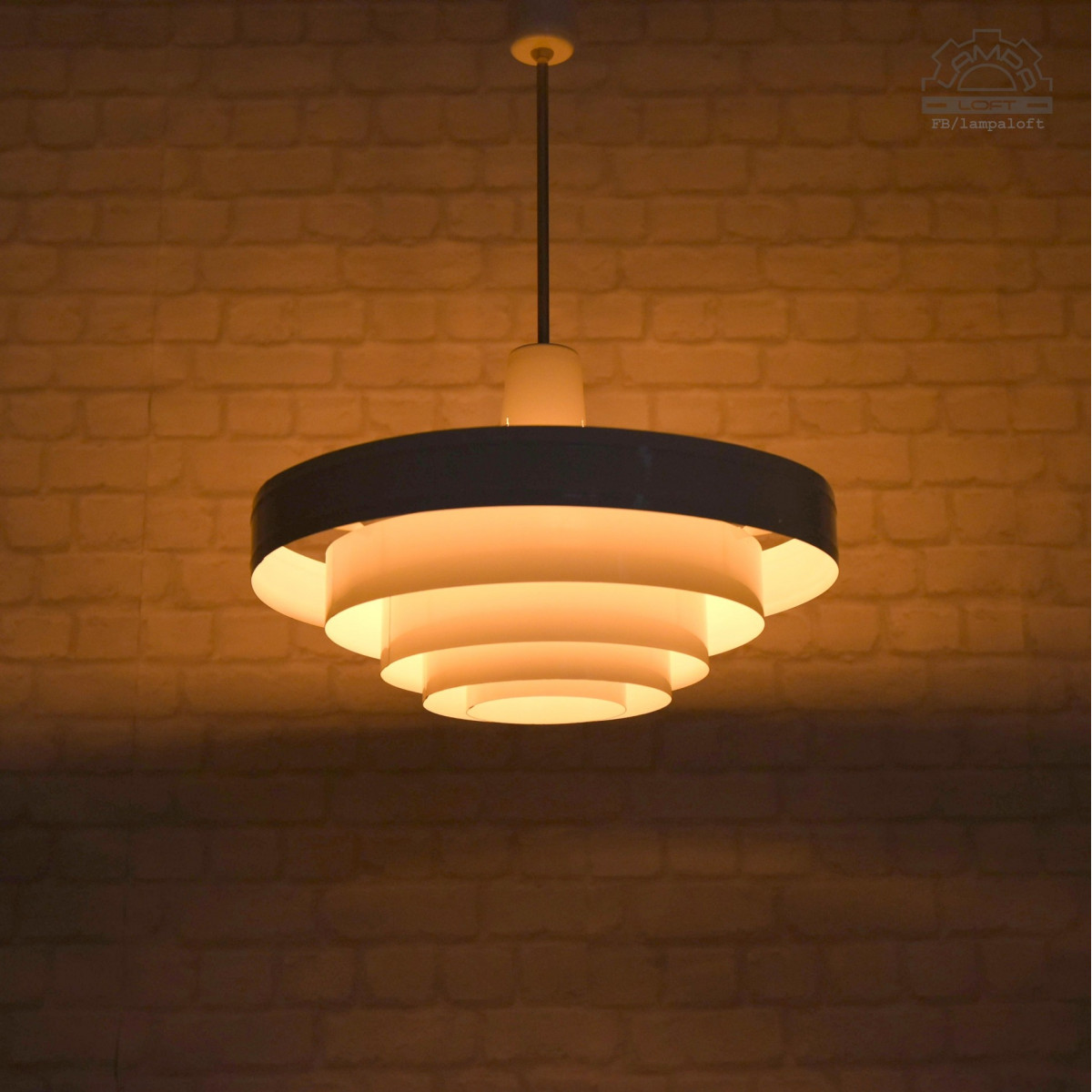 Przywrócona do oryginalnego stanu lampa sufitowa OSr-2 wyprodukowana w latach 60' przez Mazurskie Zakłady Aparatury Oświetleniowej A-23 w Wilkasach.