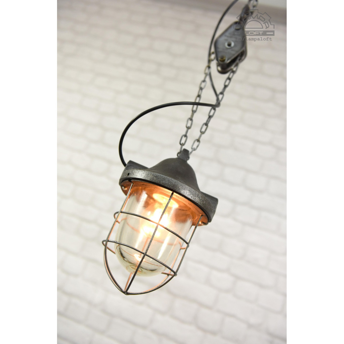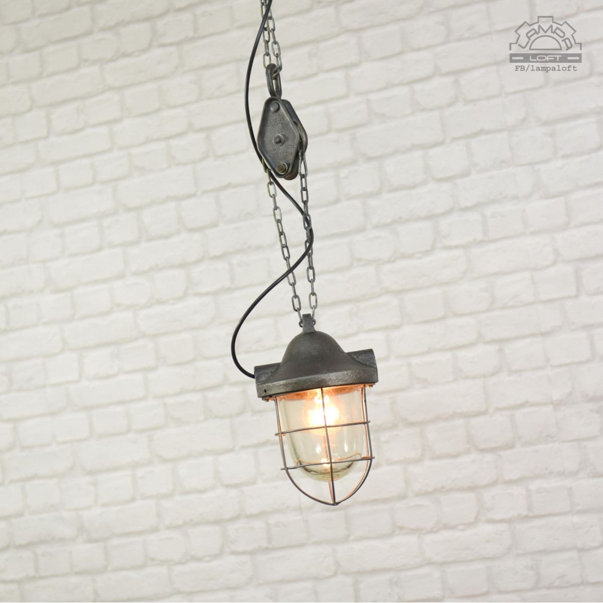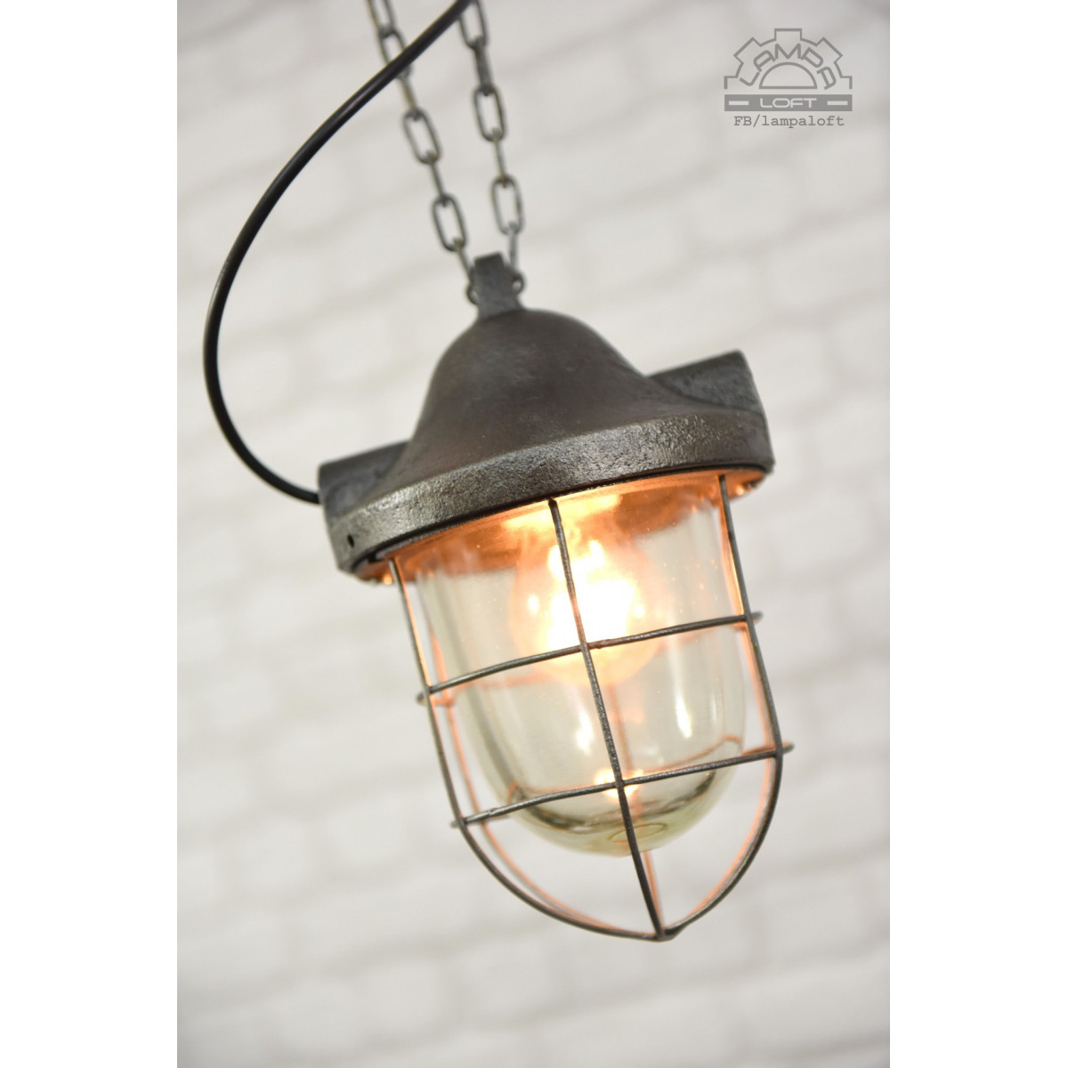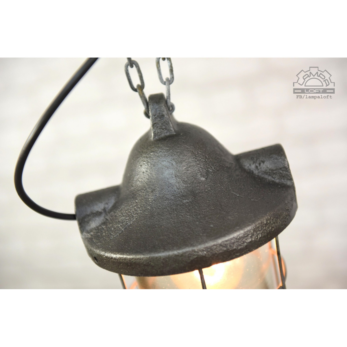 Odrestaurowana żeliwna lampa industrialna model C-100 wyprodukowana w latach 50' przez Energetykę Sopot