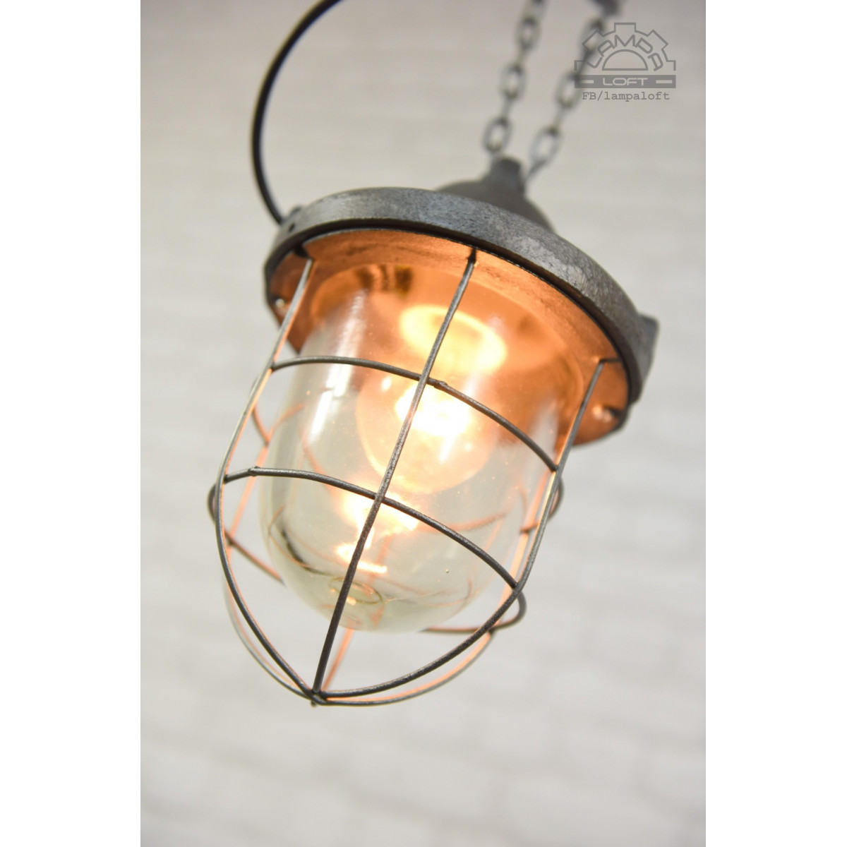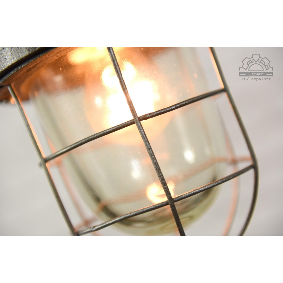 Klosz z grubego szkła boro-krzemowego. Przezroczysty klosz. Lampa zabezpieczona specjalnym lakierem antykorozyjnym, żeliwo nie straci swojego koloru.