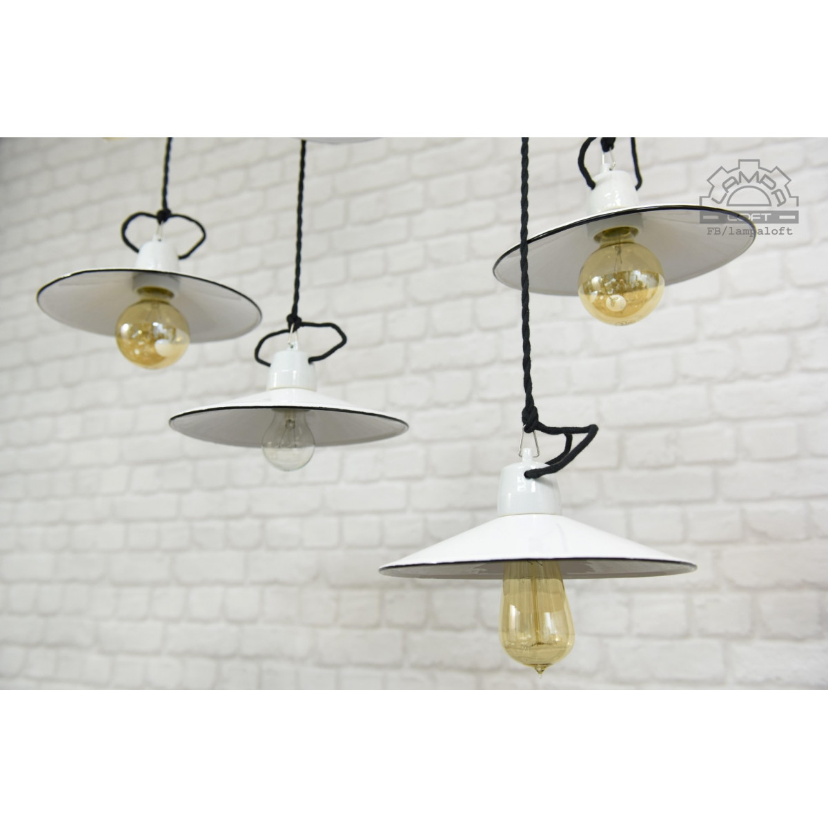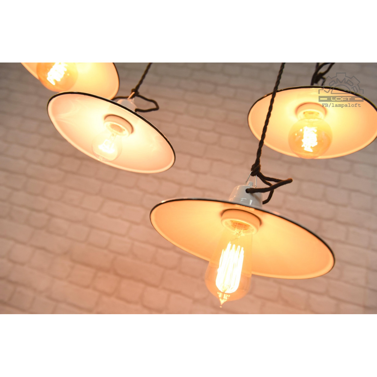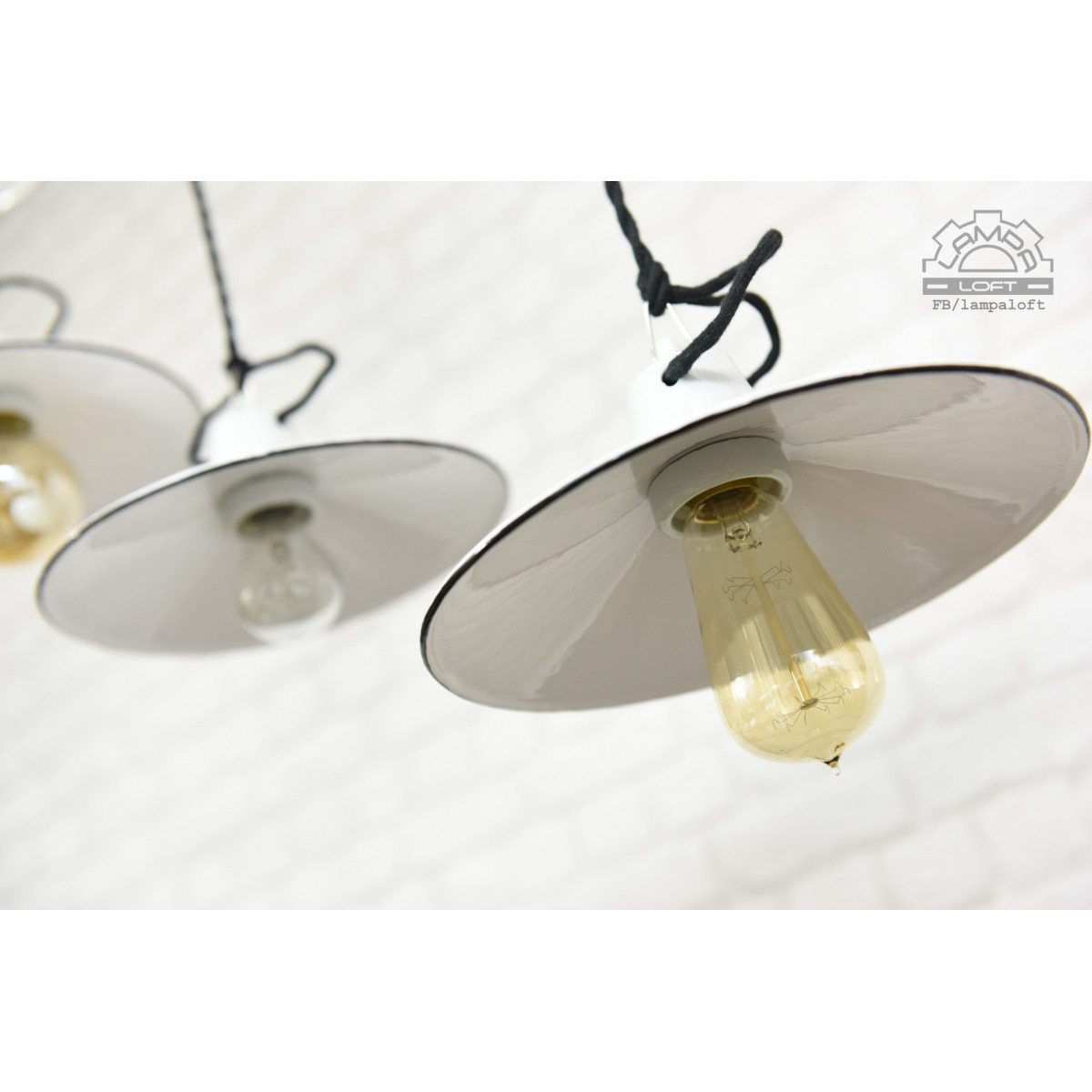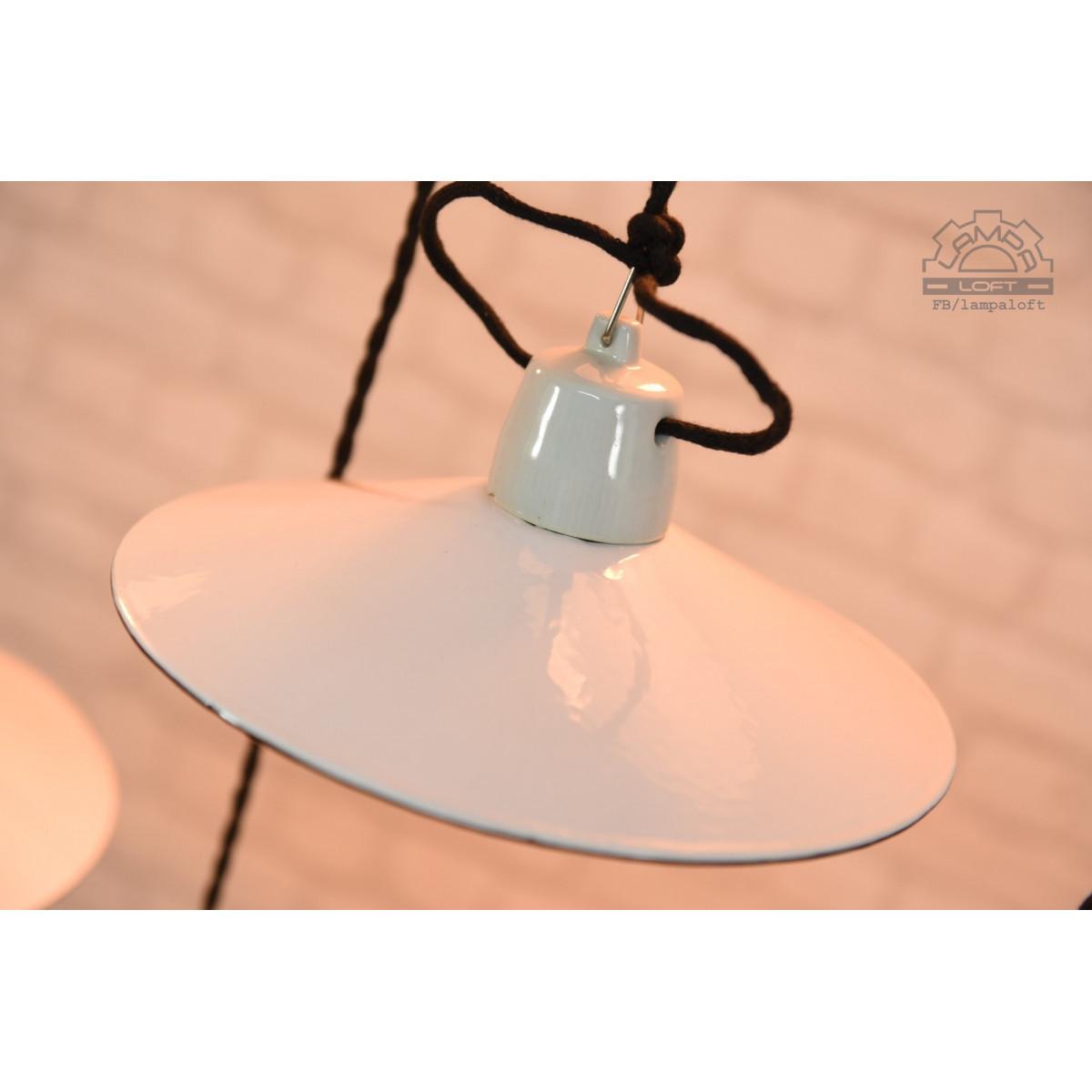 Odrestaurowane lampy talerzykowe wyprodukowane przez Myszkowską Fabrykę Naczyń Emaliowanych w latach 60'.