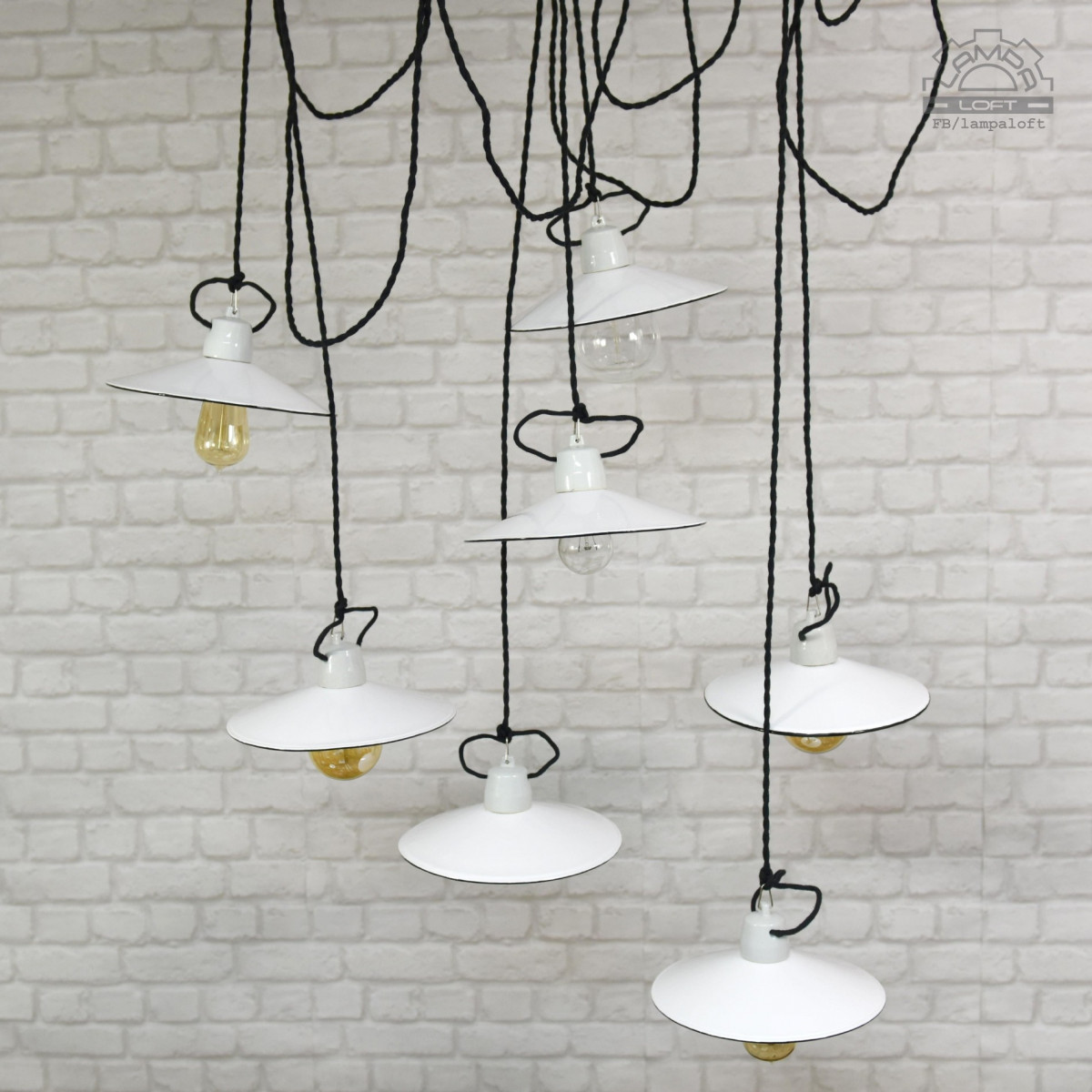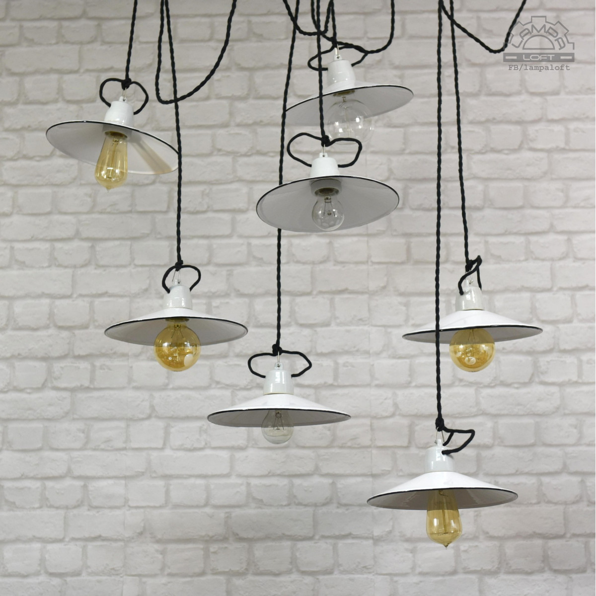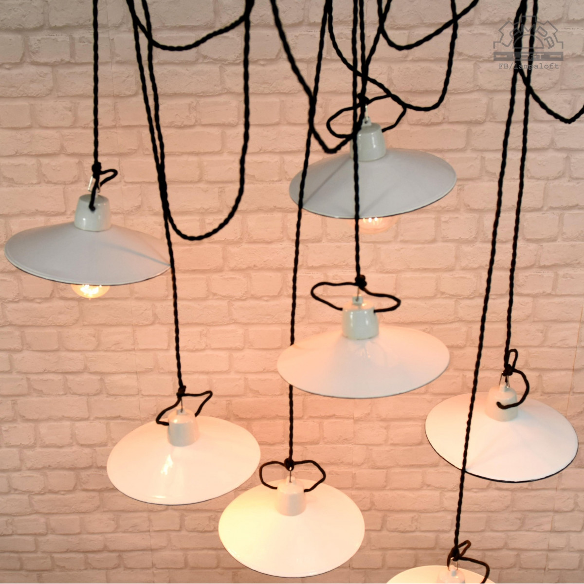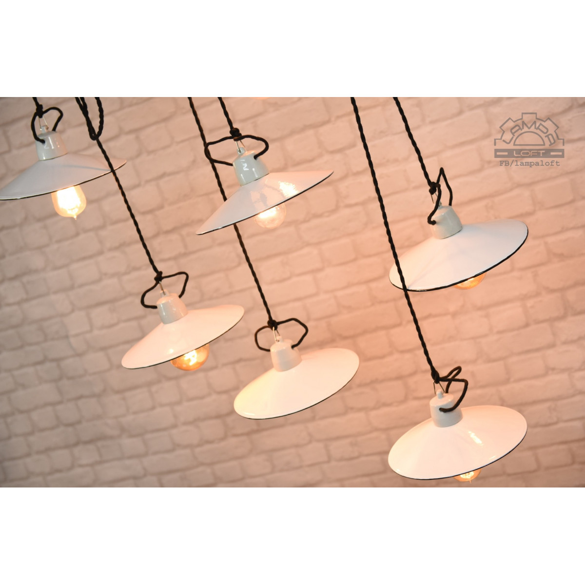 Odrestaurowane lampy talerzykowe wyprodukowane przez Myszkowską Fabrykę Naczyń Emaliowanych w latach 60'.