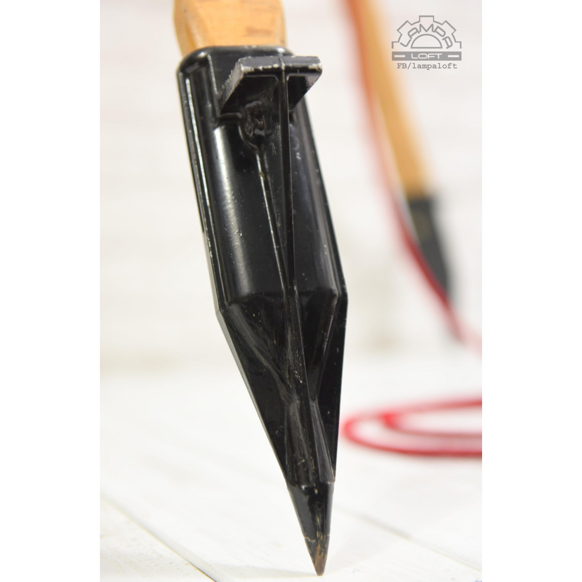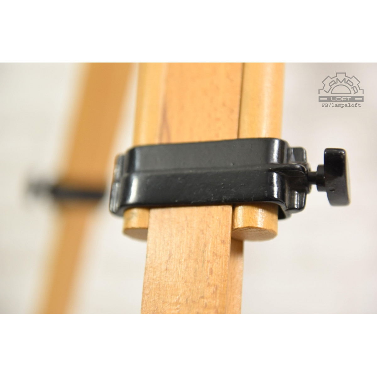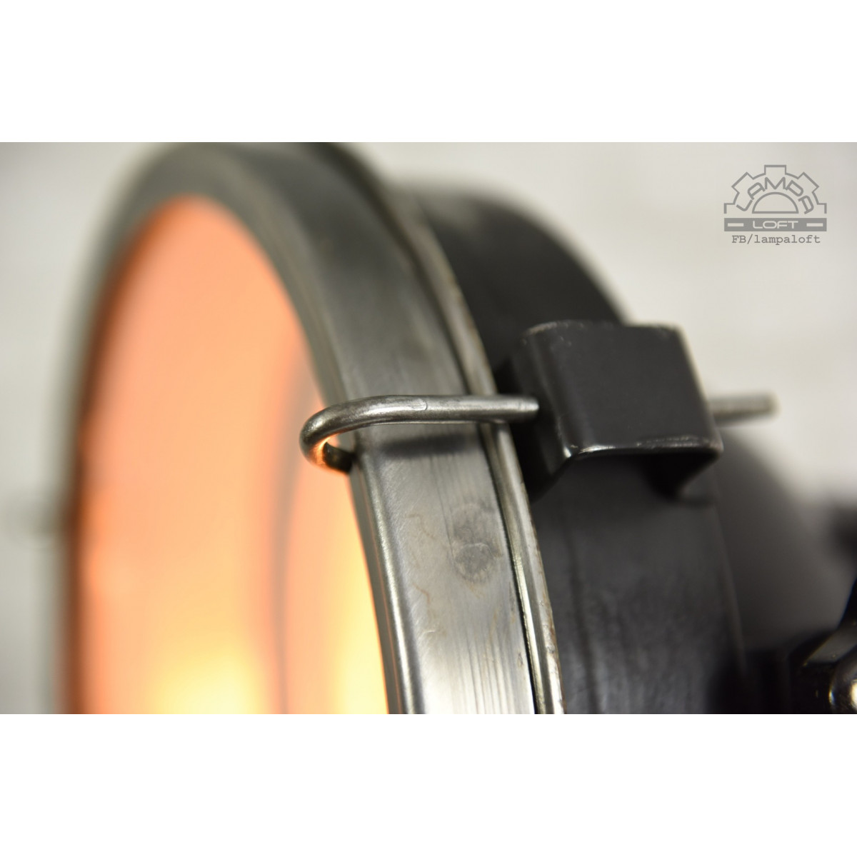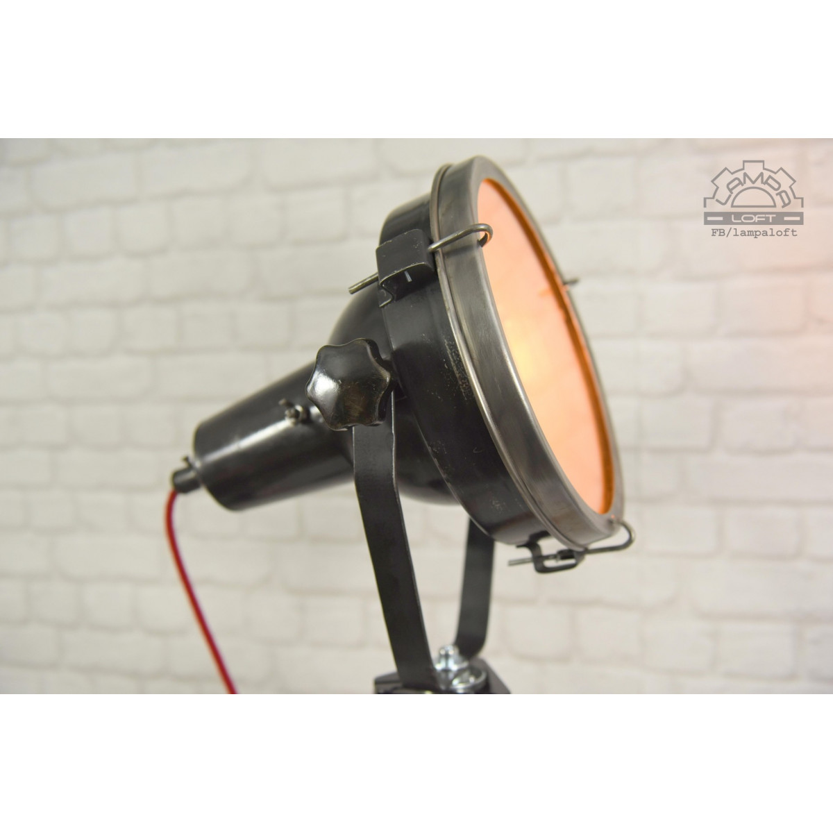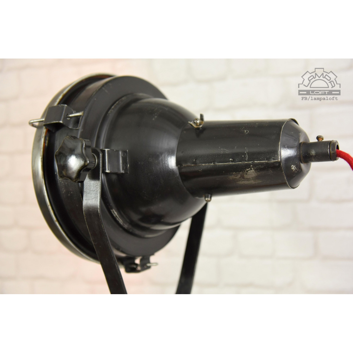 Odrestaurowany naświetlacz wyprodukowany w latach 60' przez Zakłady Wytwórcze Aparatury Teatralnej i Oświetleniowej A-20 w Korzuchowie. Model C 41-01. Reflektor postawiony na trójnogu drewnianym wyprodukowanym w Związku Socjalistycznych Republik Radzieckich.