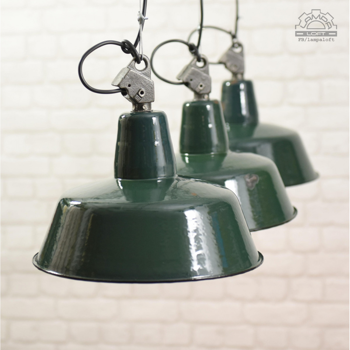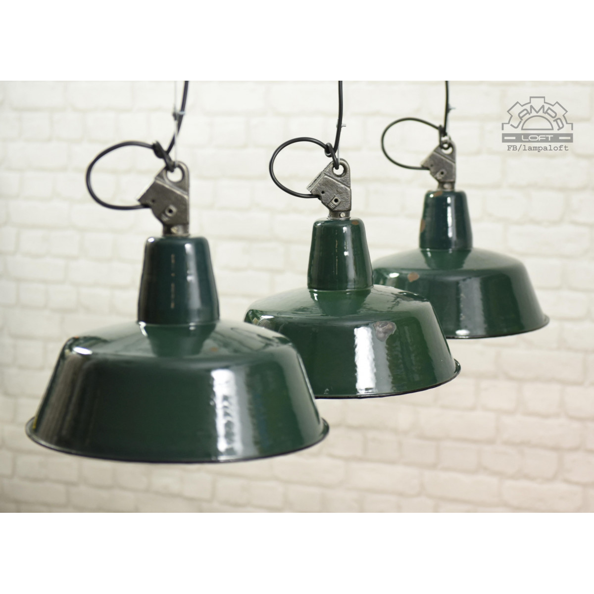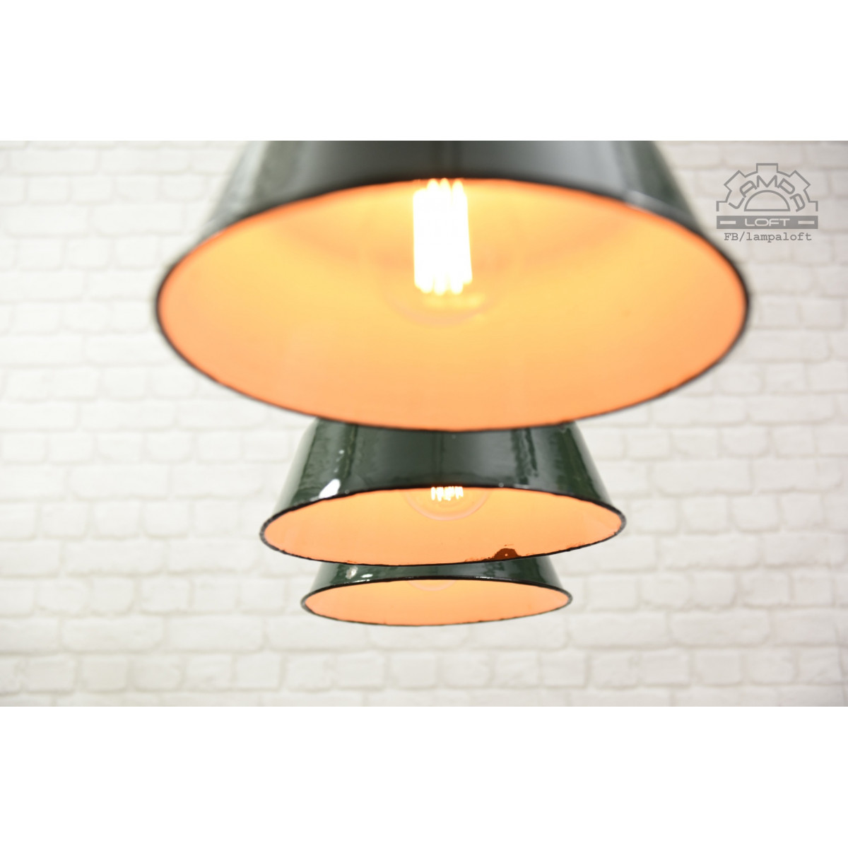 Lampy emaliowane z lat 60' model OBs-2 wyprodukowane przez Mazurskie Zakłady Aparatury Oświetleniowej A-23 w Wilkasach.