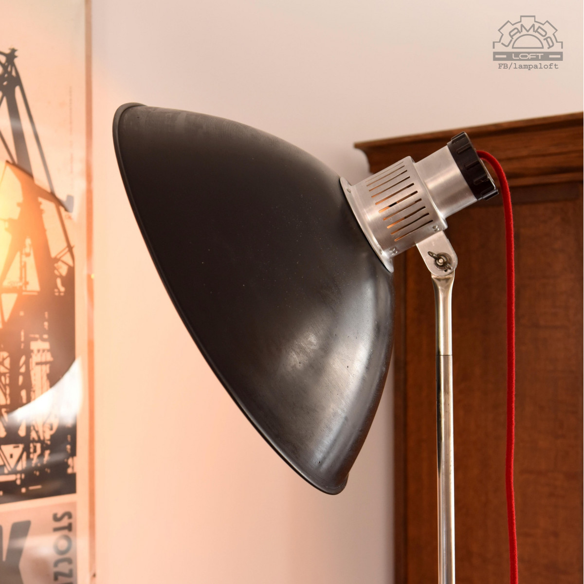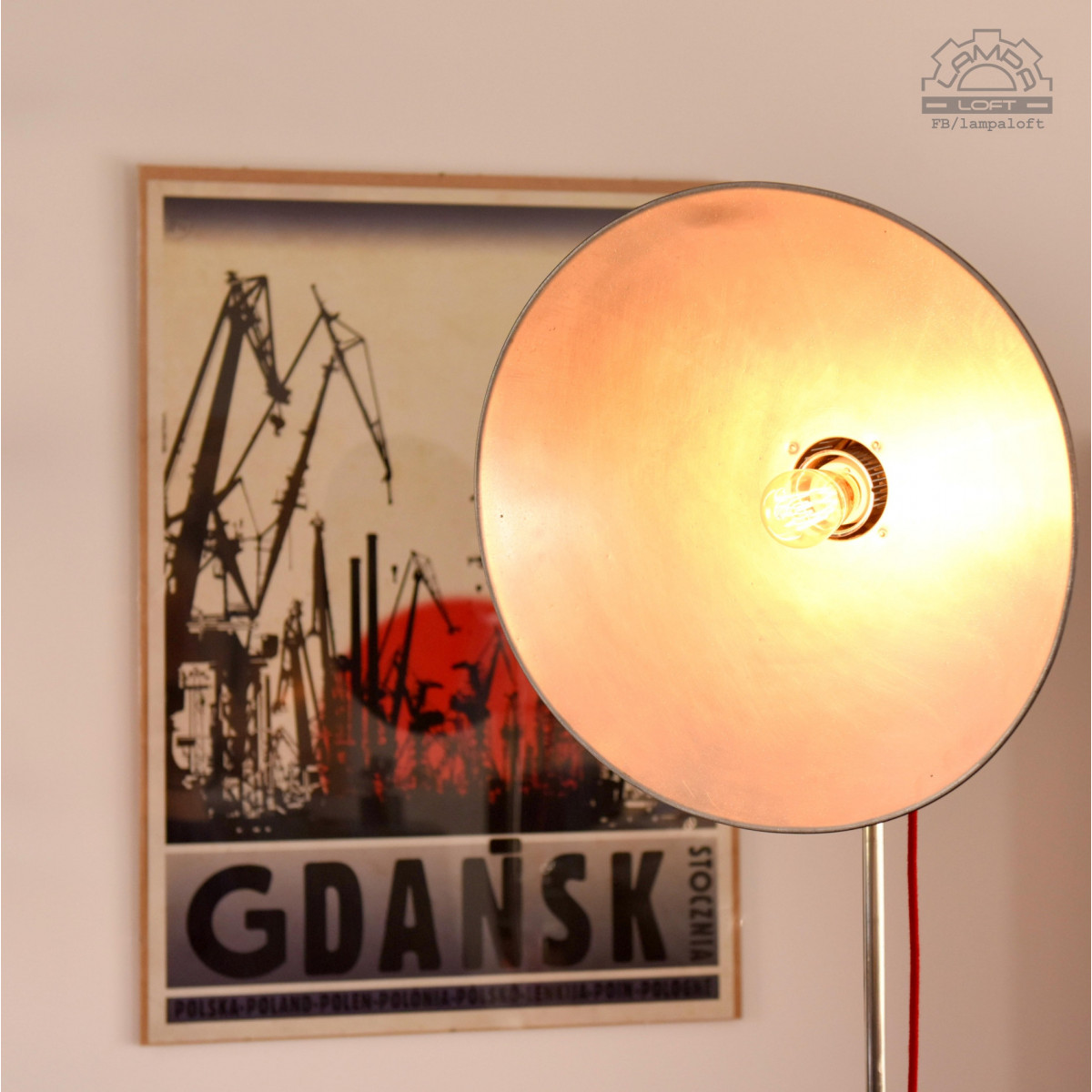 Lampa industrialna na statywie z podstawą żeliwną. Wyprodukowana w 1979 roku.