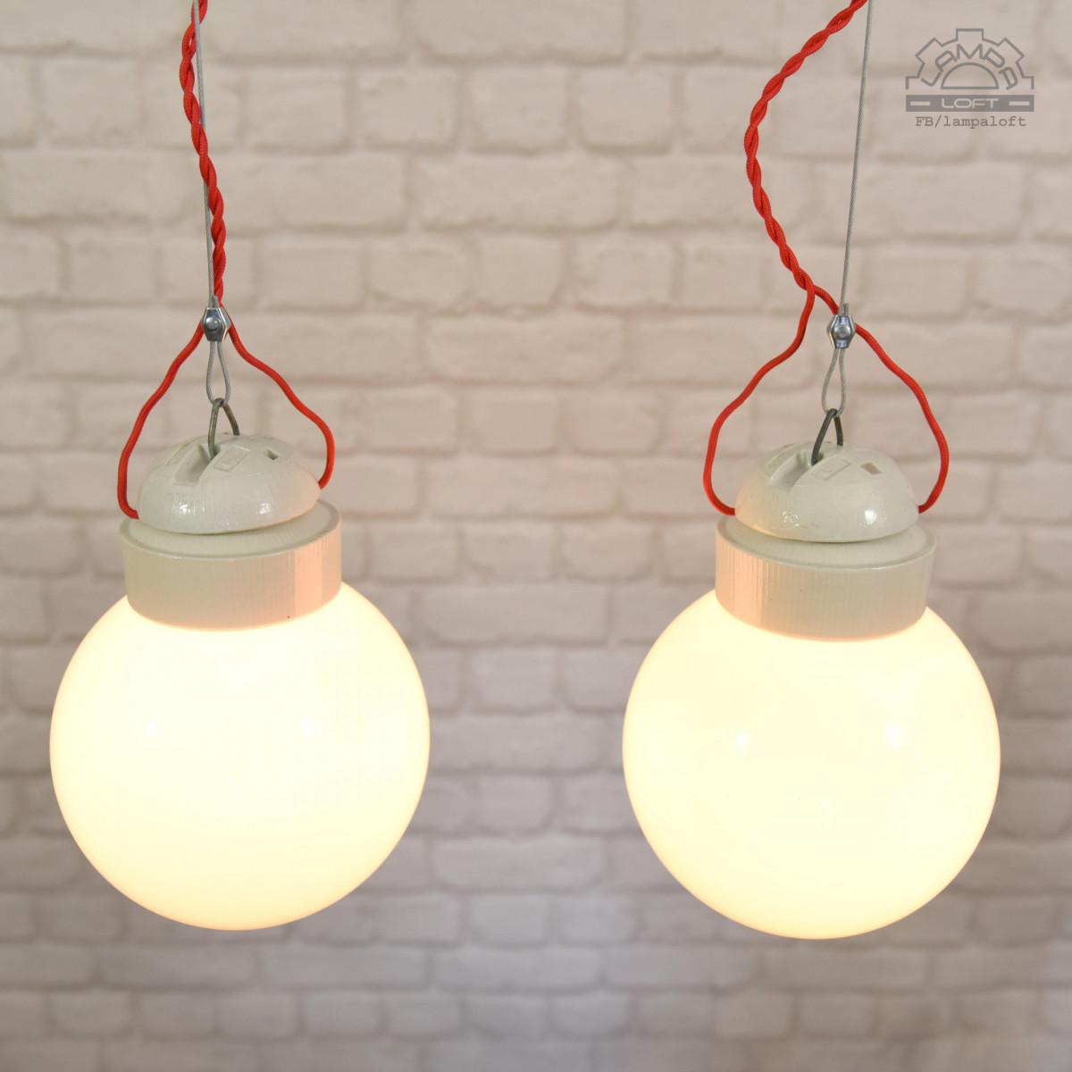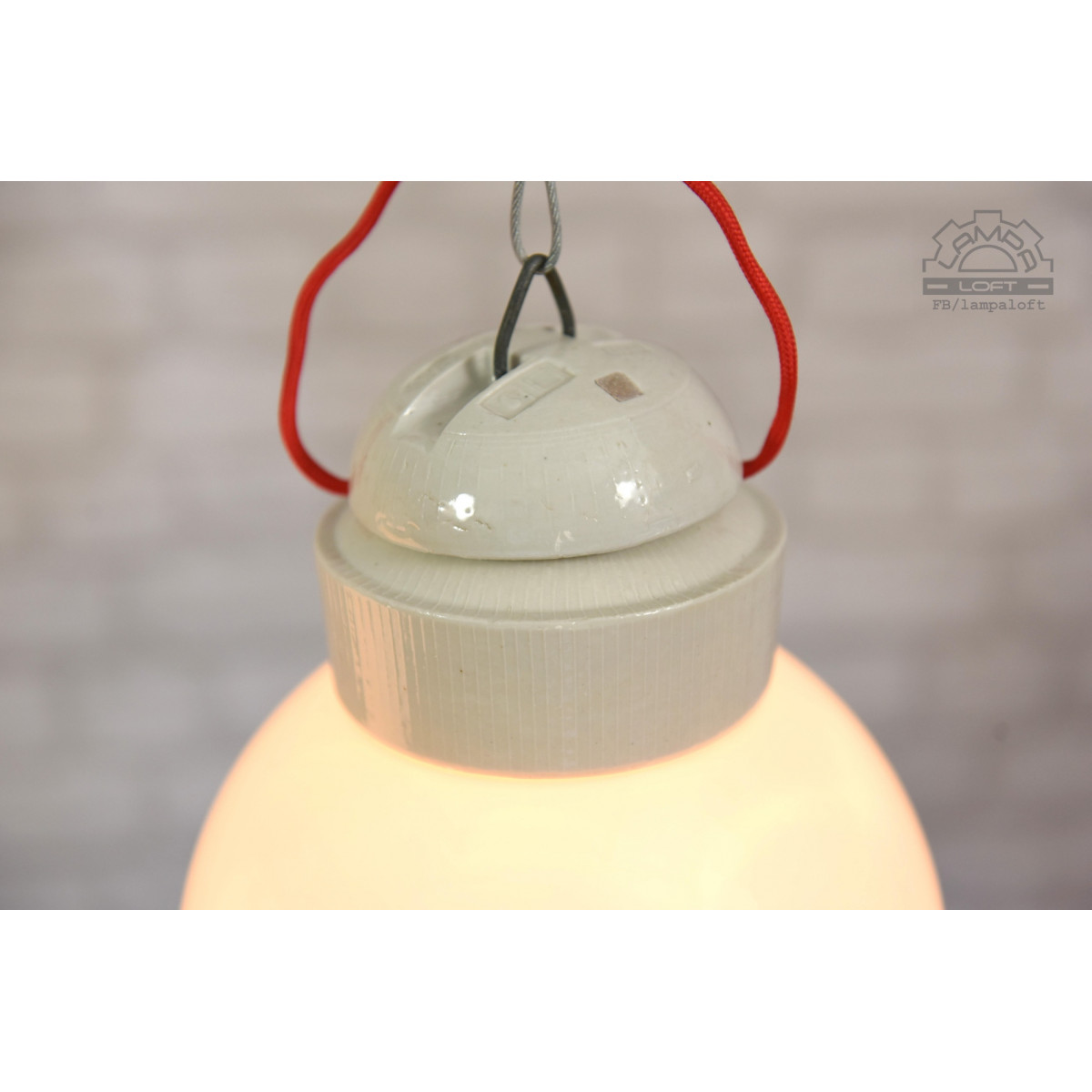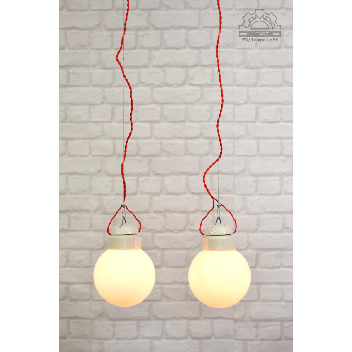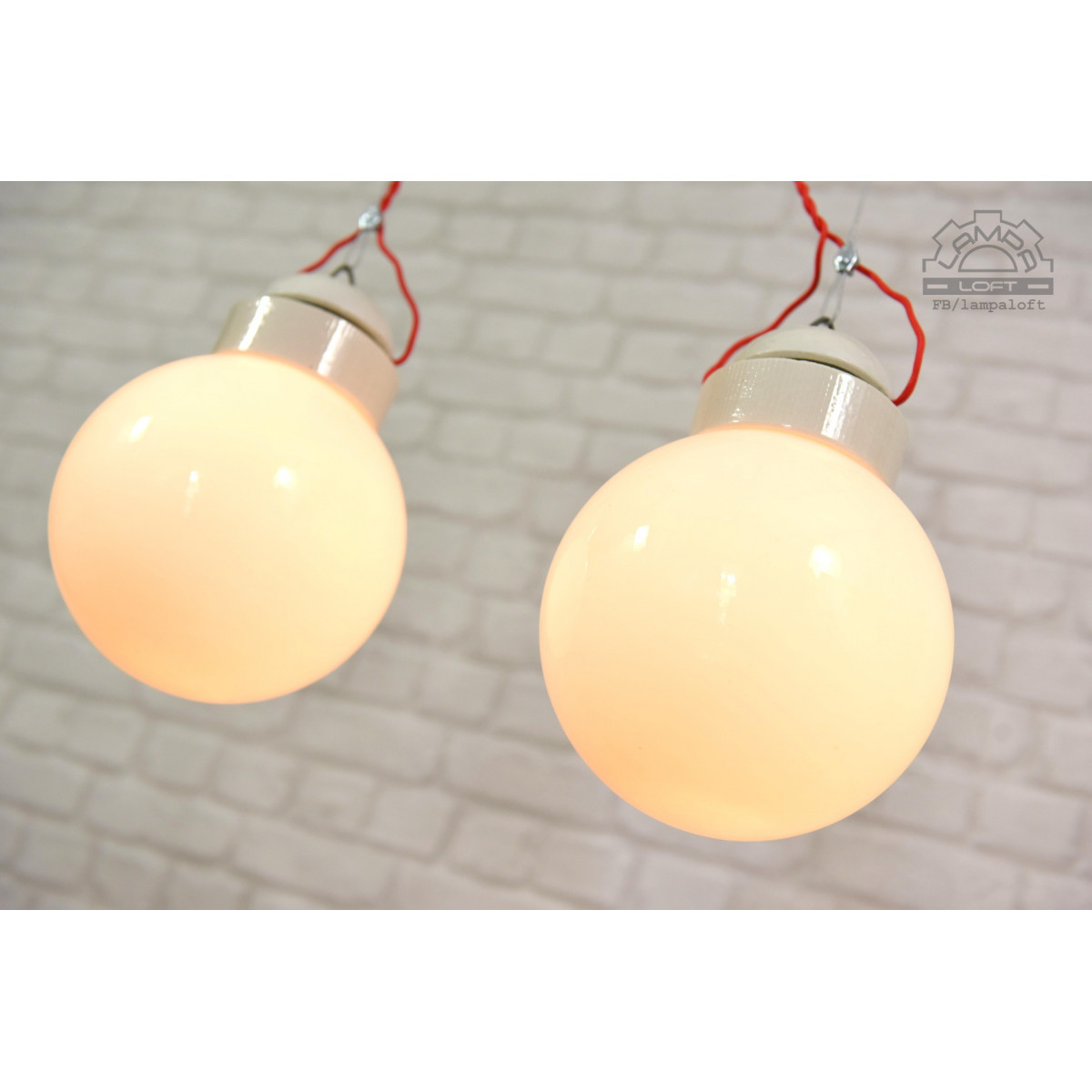 Wysokość 20cm, średnica 18cm, długość całej wiszącej lampy z przewodem w oplocie i linką 170cm. Oprawka porcelanowa na zwykłą żarówkę E27 max. 60W. Lampa przygotowana do zawieszenia. Kostka do podłączenia w czarnej osłonie sufitowej.