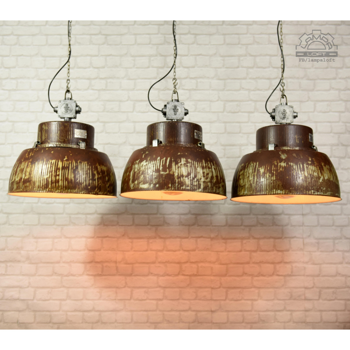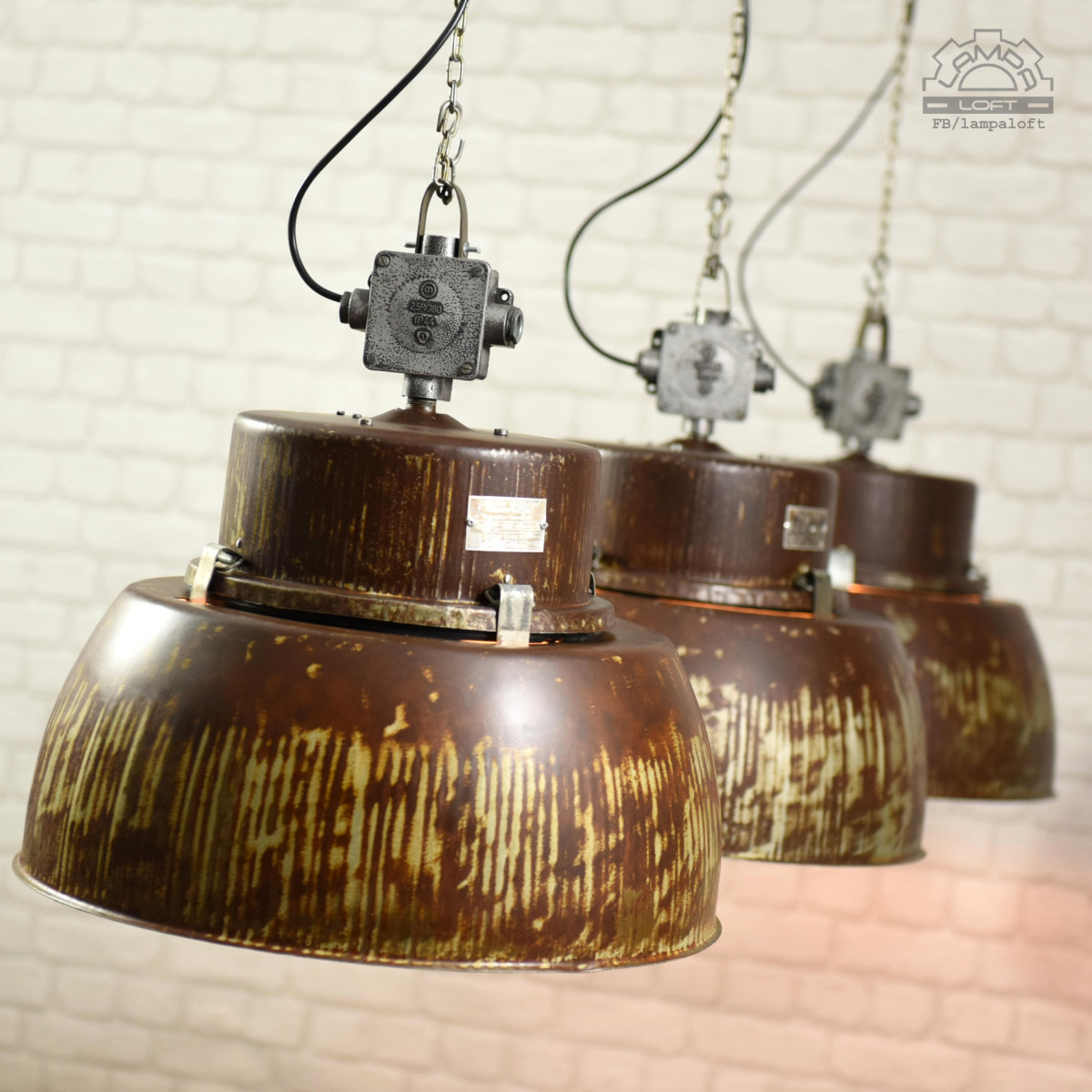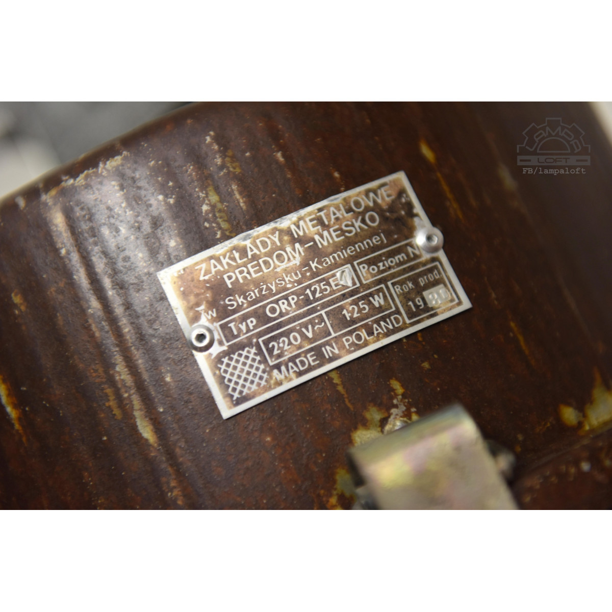 Lampy w nieco innym wydaniu :) Uwaga ! rdza jest zrobiona przeze mnie. Rdza jest zabezpieczona, nie brudzi. Lampa industrialna ORP-125E-1 wyprodukowana w 1980 roku przez Zakłady Metalowe PREDOM-MESKO w Skarżysku-Kamiennej.