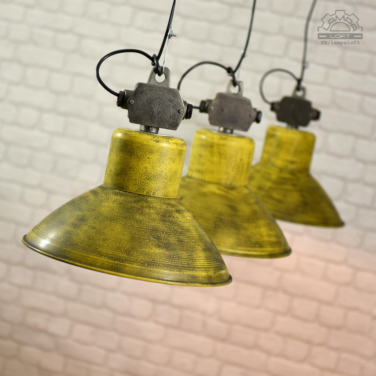 Odrestaurowane w cytrynowej patynie. Przygotowane do zawieszenia. Kostka do podłączenia z czarnej osłonie sufitowej.