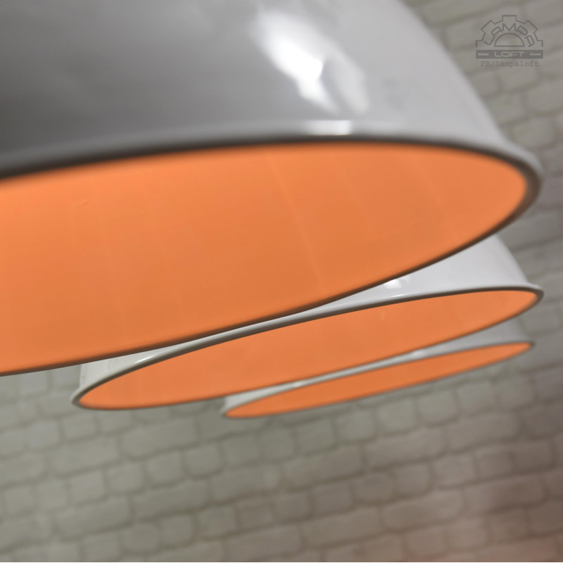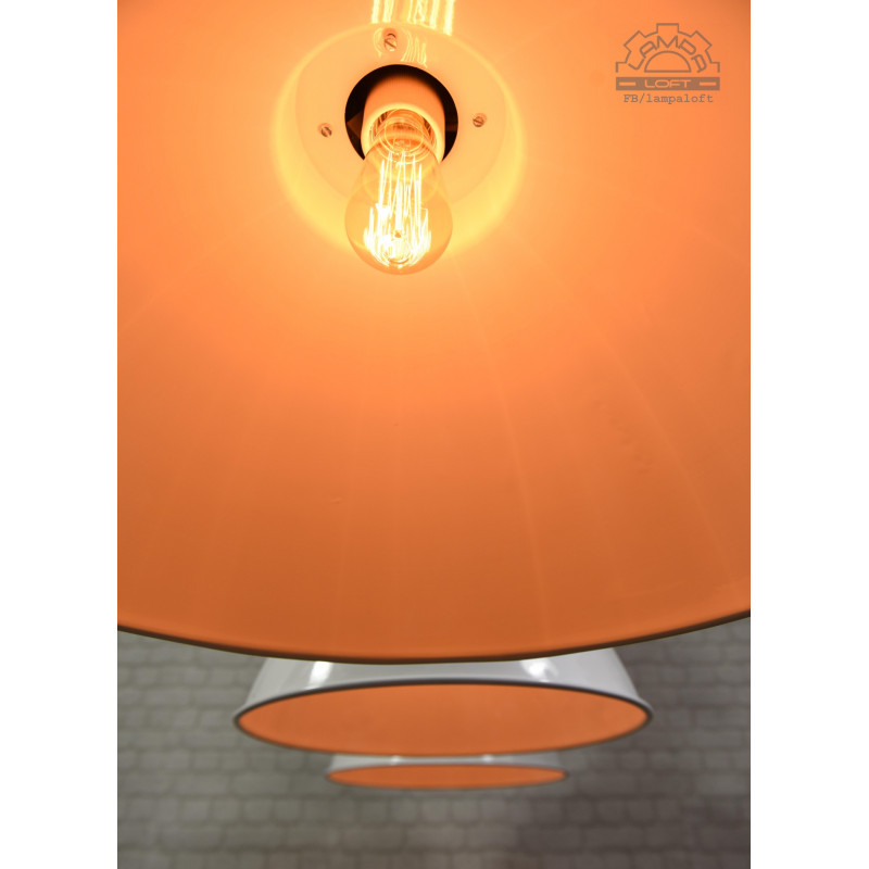 Średnica 52cm, wysokość 57cm, długość całej wiszącej lampy z przewodem 300cm, Lampy są bardzo lekkie jak na swoje gabaryty 2,7kg. Oprawka porcelanowa na zwykłą żarówkę max. 200W.