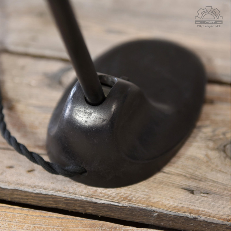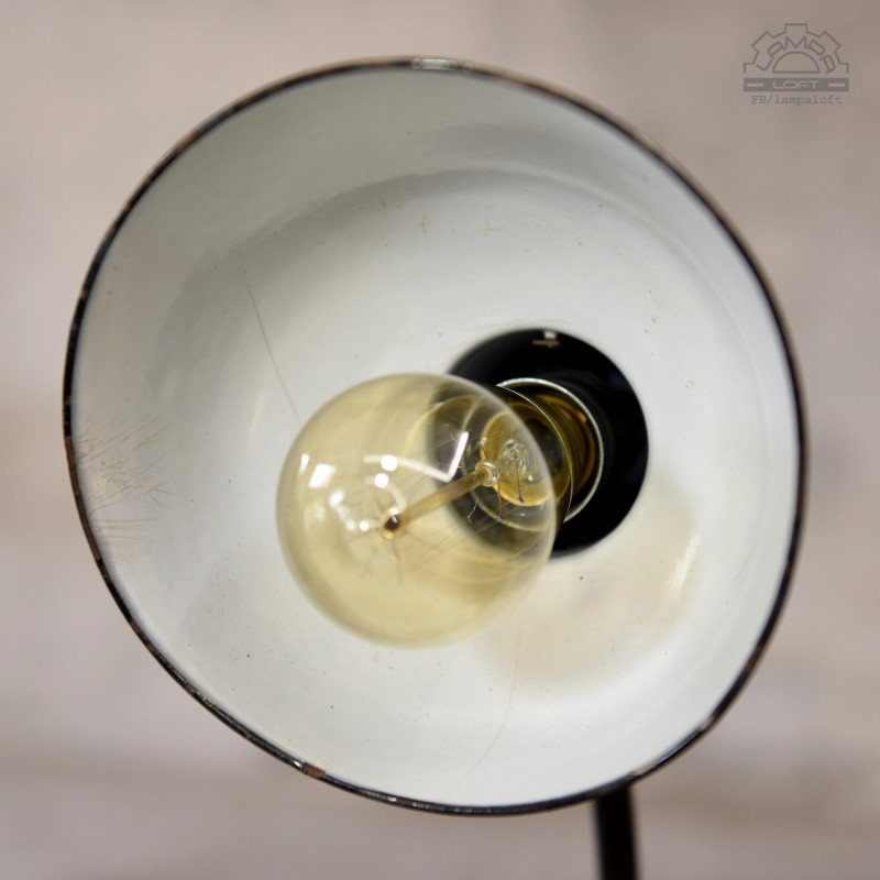 Piękna lampa biurkowa z kloszem emaliowanym. Siemens z lat 30'. Średnica klosza 18cm, podstawa żeliwna 21x12cm, wysokość 52cm. Przewód skręcany w oplocie bawełnianym 150cm.