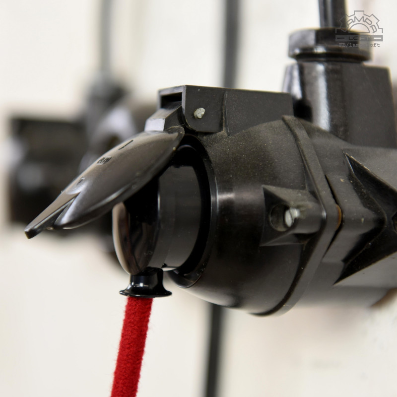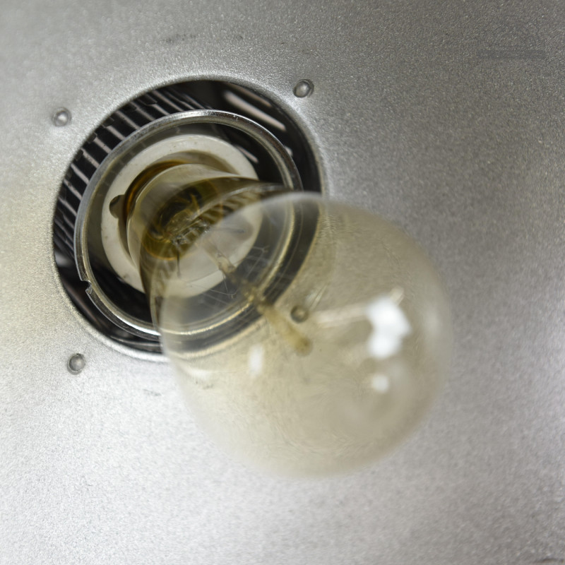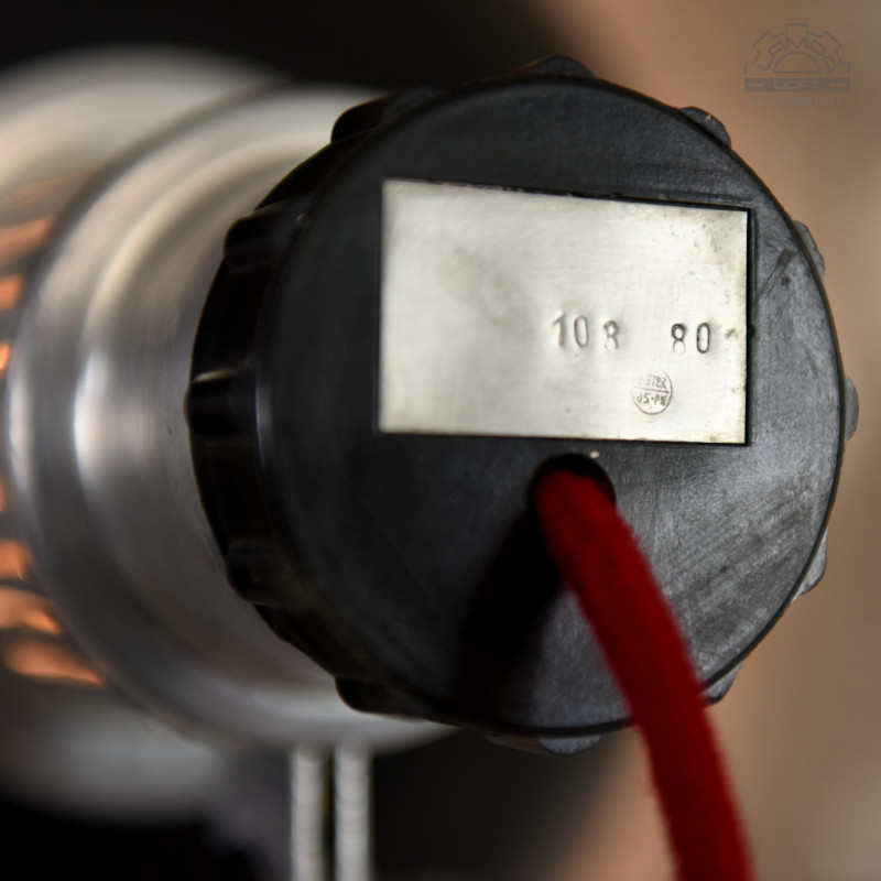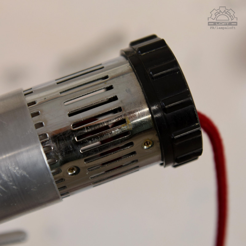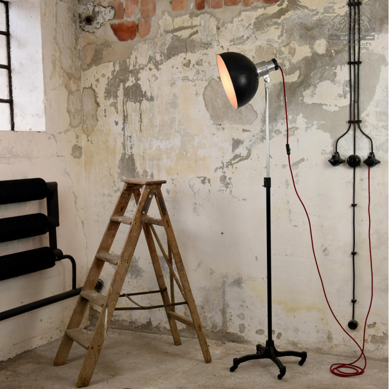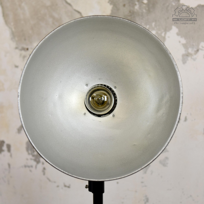 Lampa industrialna na statywie z podstawą żeliwną. Wyprodukowana w 1980 roku.