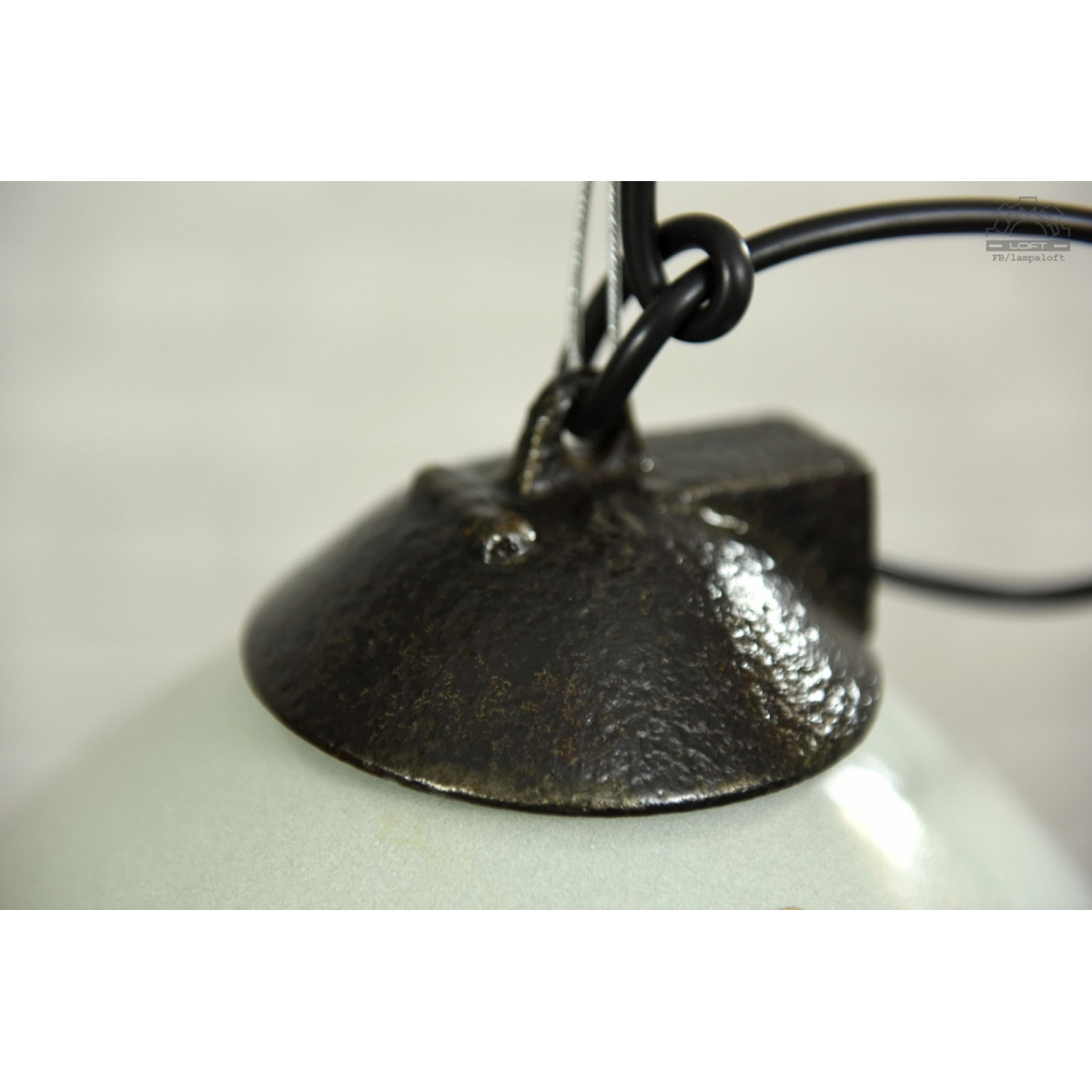 Lampa emaliowana z lat 70' model OPC-250 wyprodukowana przez Zakłady Sprzętu Oświetleniowego ZAOS w Wilkasach. Zachowana oryginalna powłoka emalii ceramicznej z cechami upływu czasu.