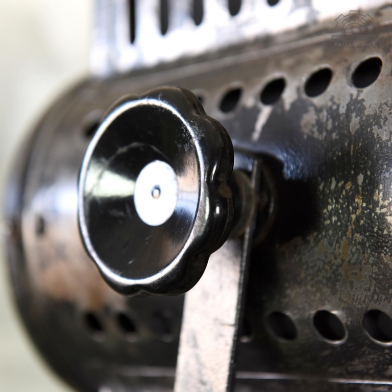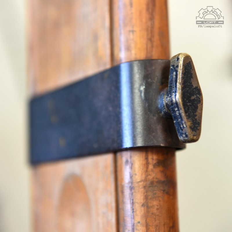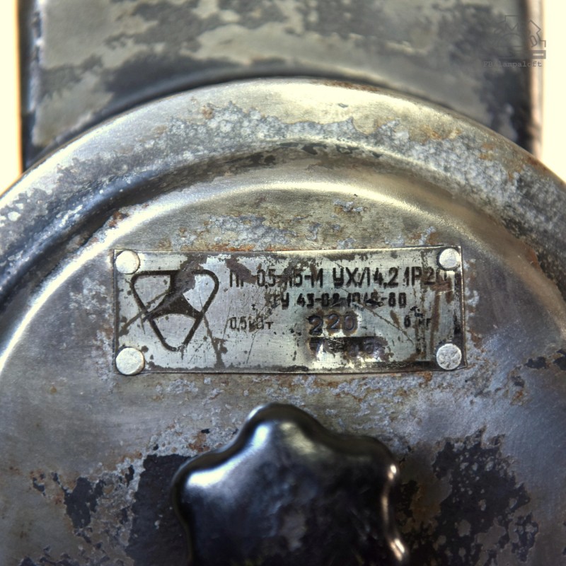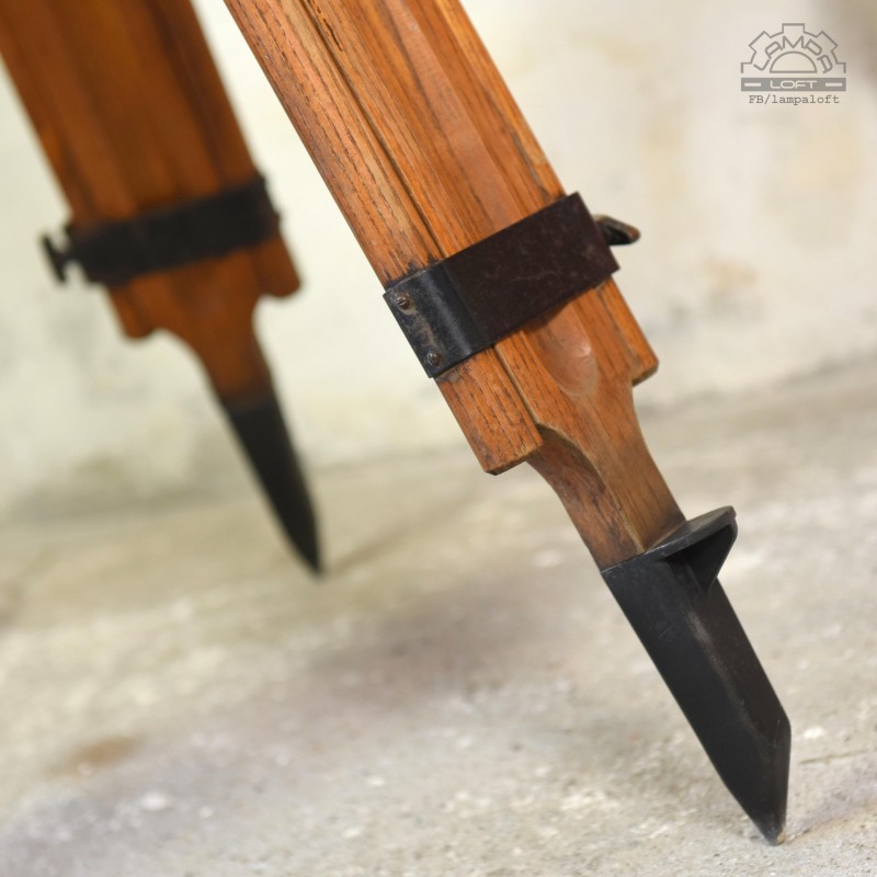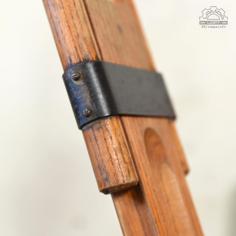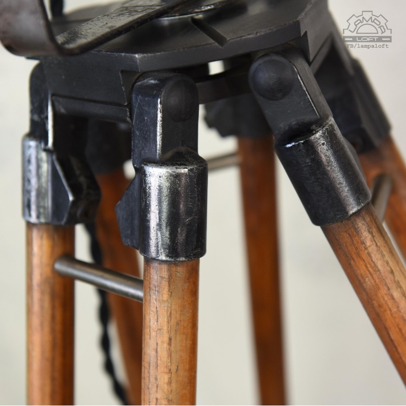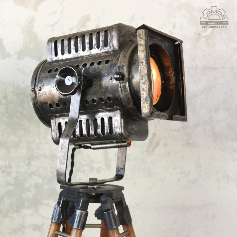 Radziecki reflektor filmowy na drewnianym statywie. Wyprodukowany w 1986 roku. Lampa regulowana w każdym kierunku. Wysokość min.130cm, max. 185cm. Oprawka na żarówkę E27 max. 75W Przewód w oplocie bawełnianym skręcanym 4 metry. Włącznik na lampie.