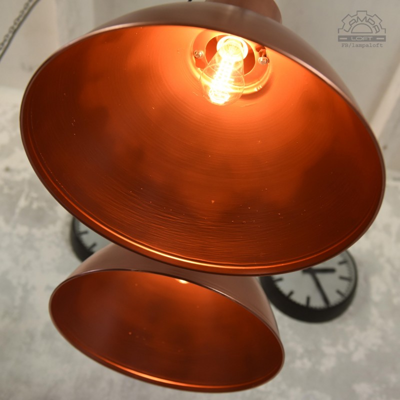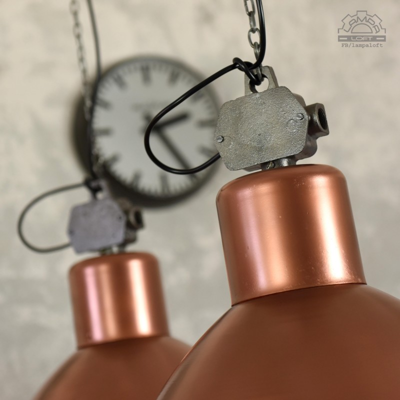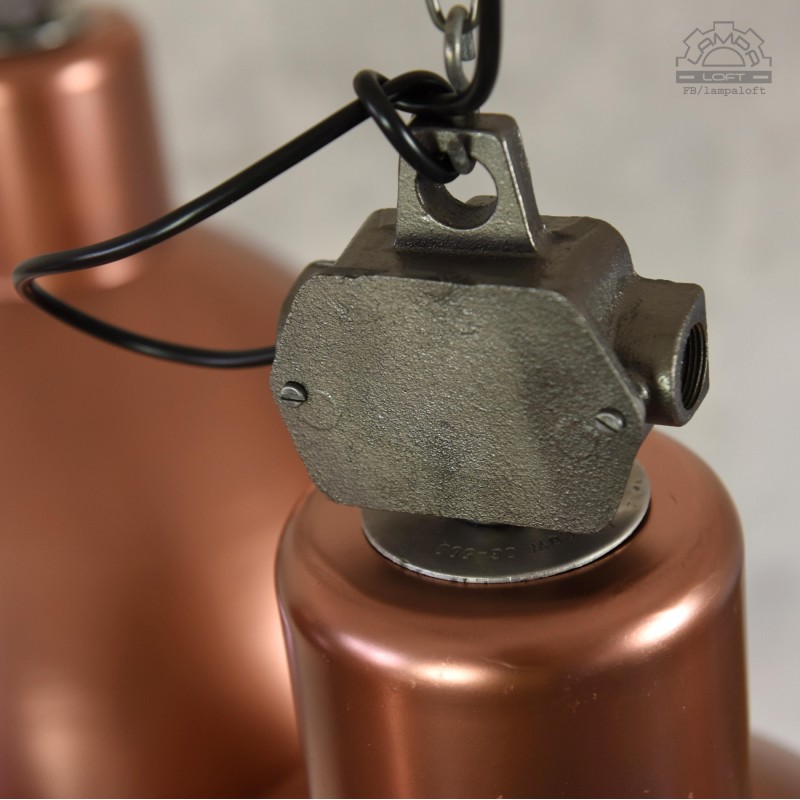 Lampy industrialne model OG-500 wyprodukowana przez Polam Wilkasy w latach 70'. Odrestaurowane w miedzianym kolorze.