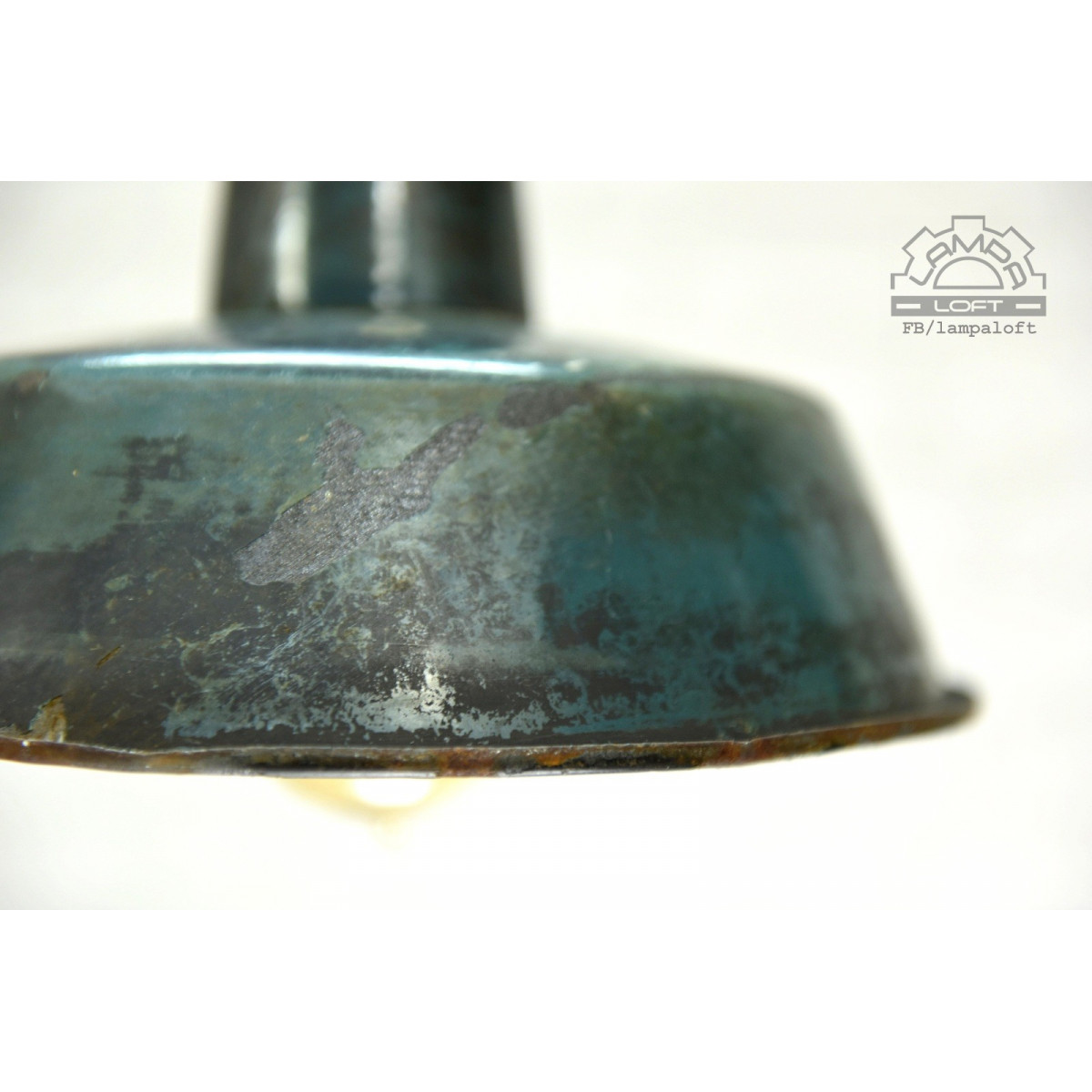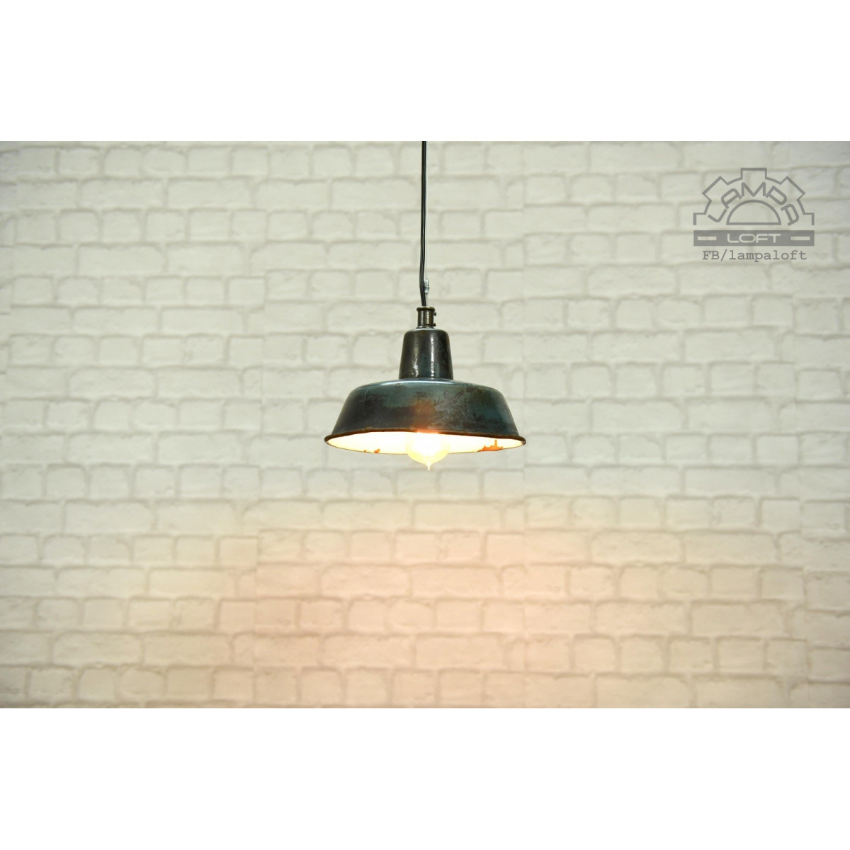 Lampa emaliowana wyprodukowana przez Mazurskie Zakłady Aparatury Oświetleniowej A-23 w Wilkasach w latach 60'. Odrestaurowana w części elektrycznej. Zachowana oryginalna patyna i zniszczenia emalii.