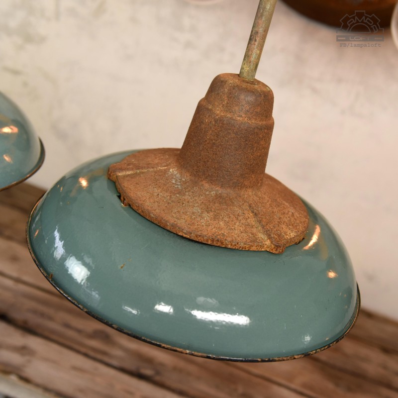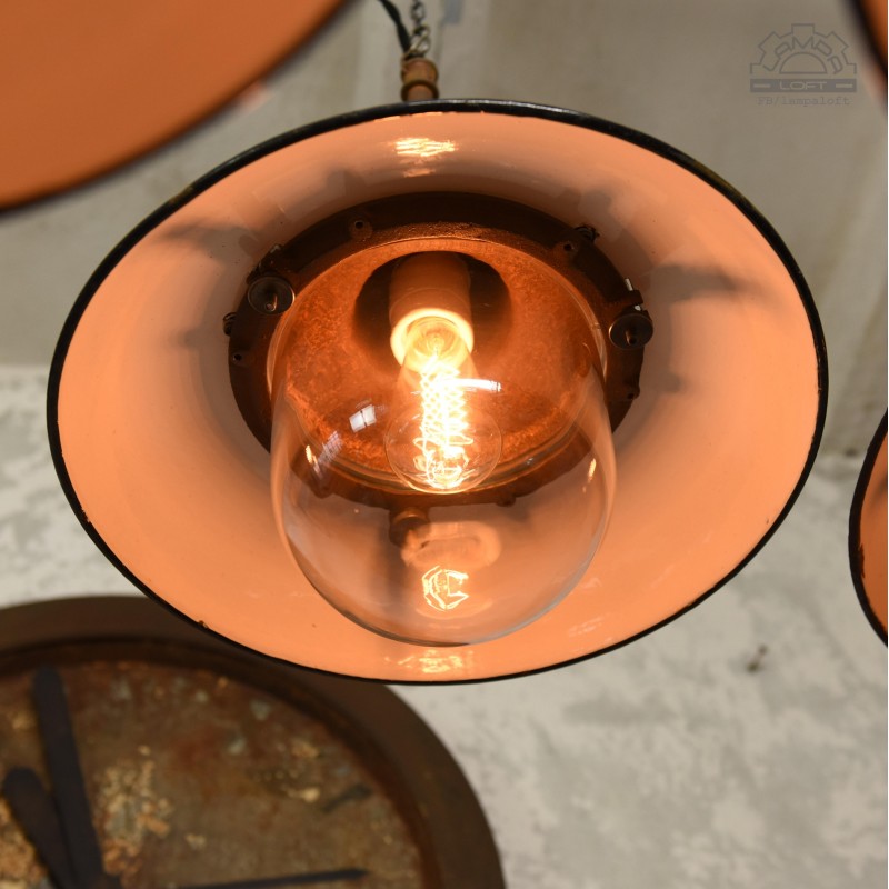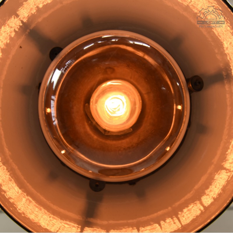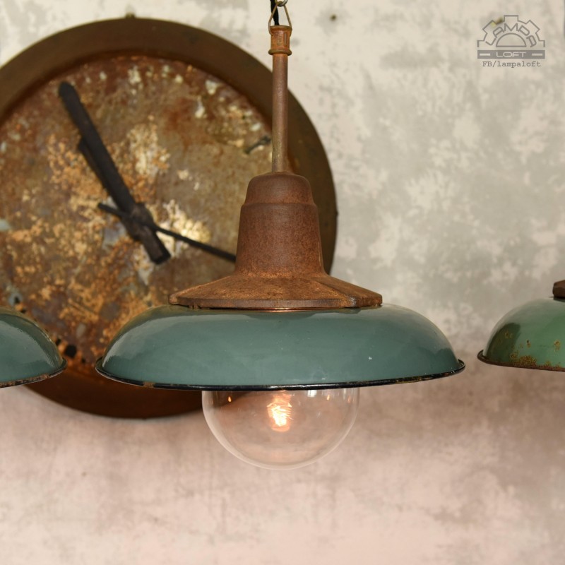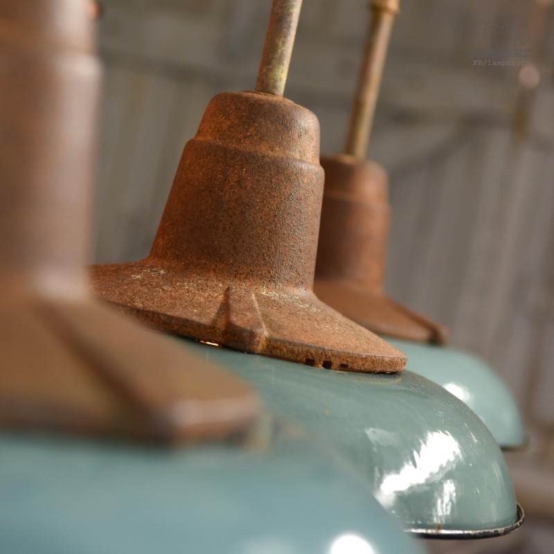 Jeden z najładniejszym modeli polskich opraw emaliowanych. Lampy industrialne z lat 50' model C-21-12 z zachowaną patyną. Pierwowzorem tego modelu były oprawy produkowane przez Fabrykę Antoniego Marciniaka nr kat 12010