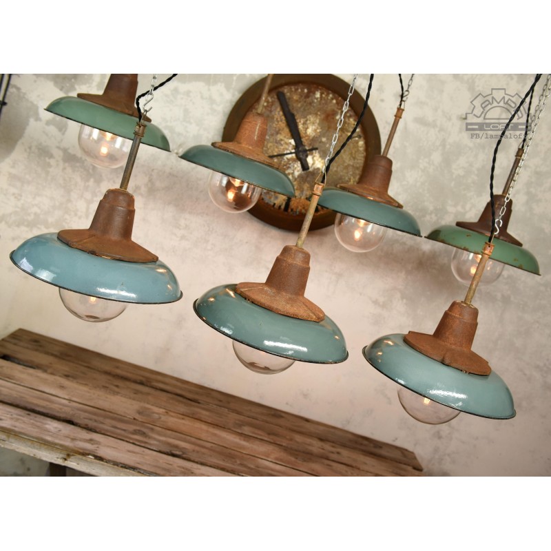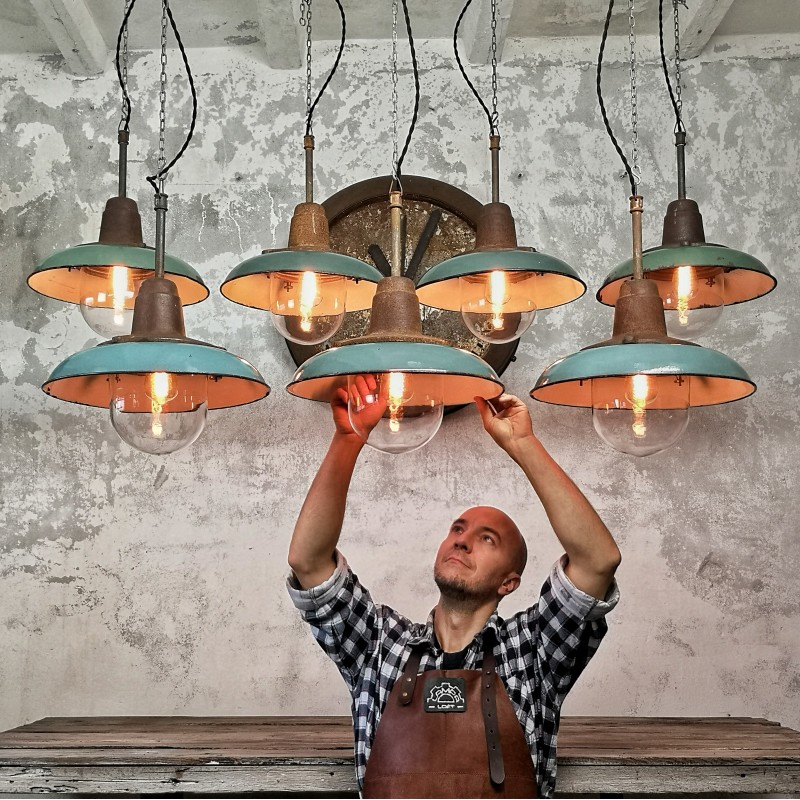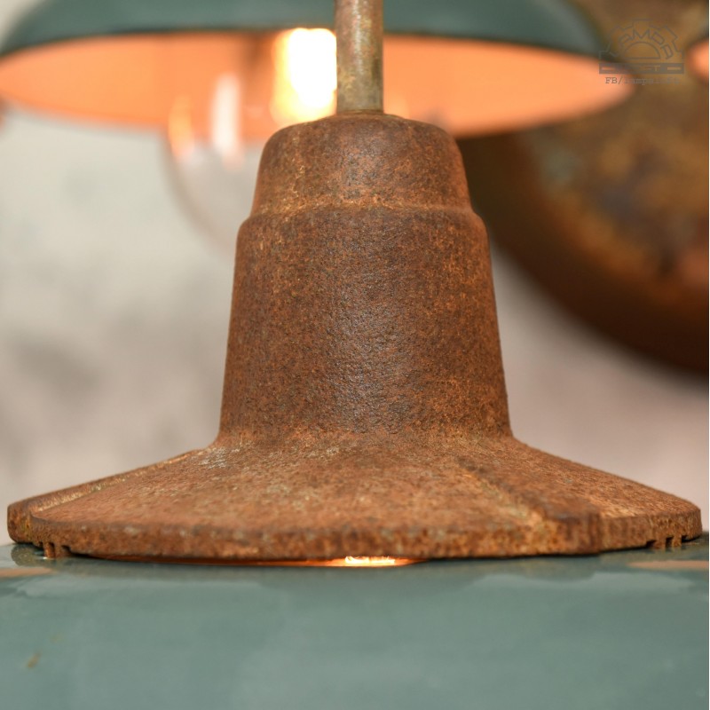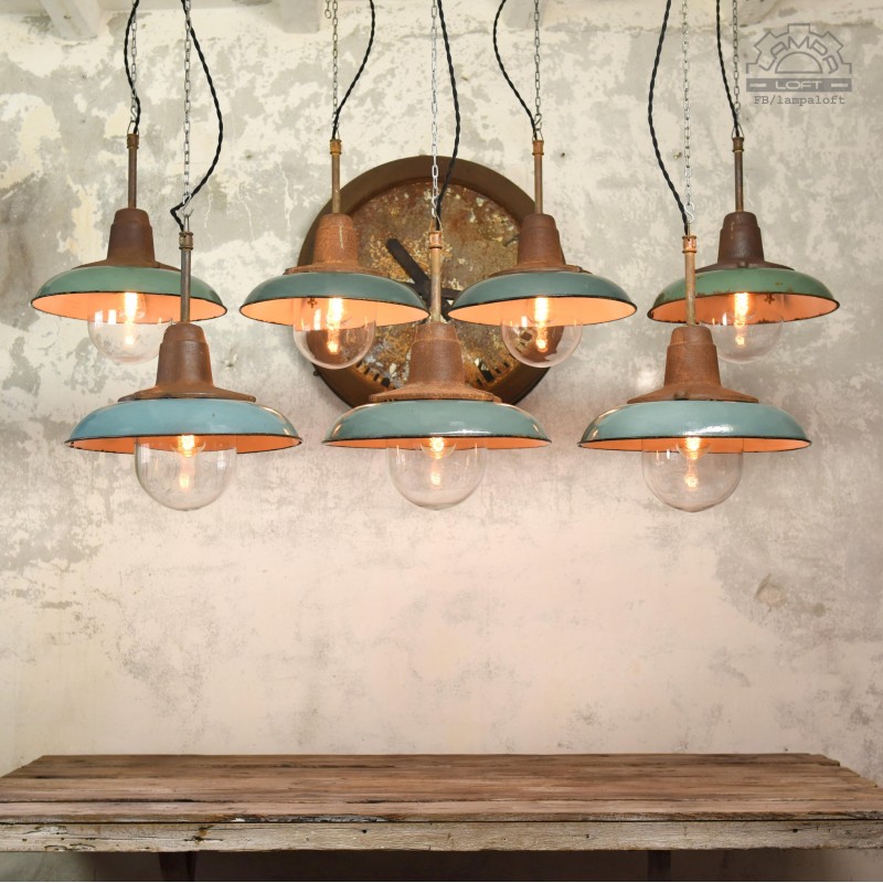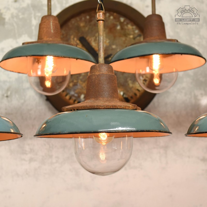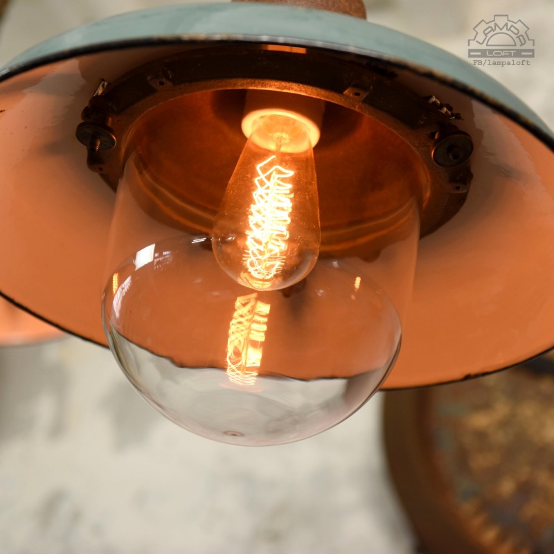 Jeden z najładniejszym modeli polskich opraw emaliowanych. Lampy industrialne z lat 50' model C-21-12 z zachowaną patyną. Pierwowzorem tego modelu były oprawy produkowane przez Fabrykę Antoniego Marciniaka nr kat 12010