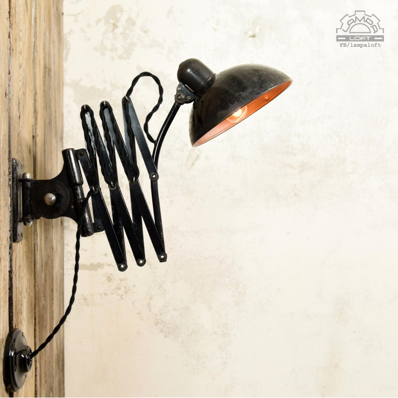 Niemiecka lampa nożycowa z lat 30' Kaiser Idell. Zaprojektowana przez Christiana Della. Model 6614.