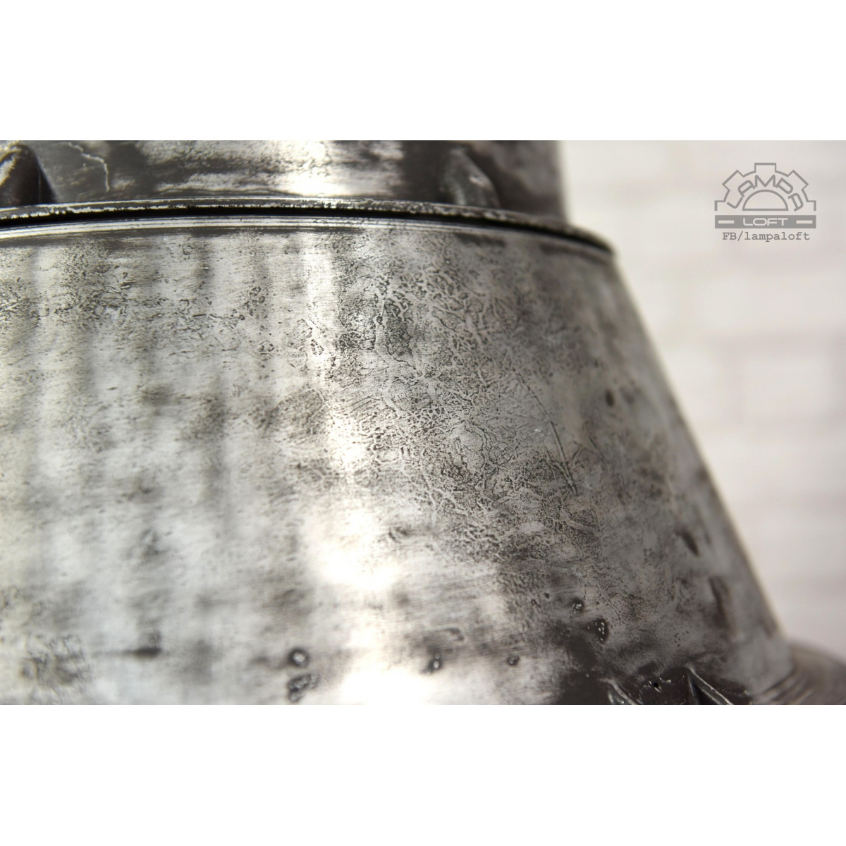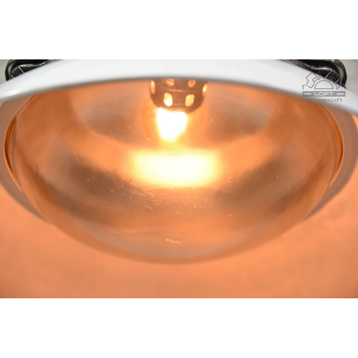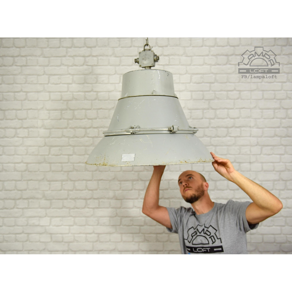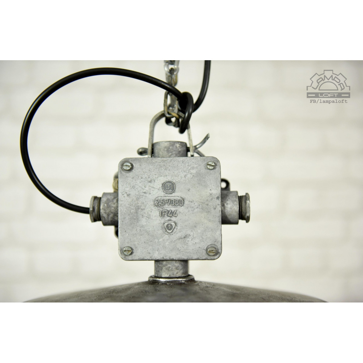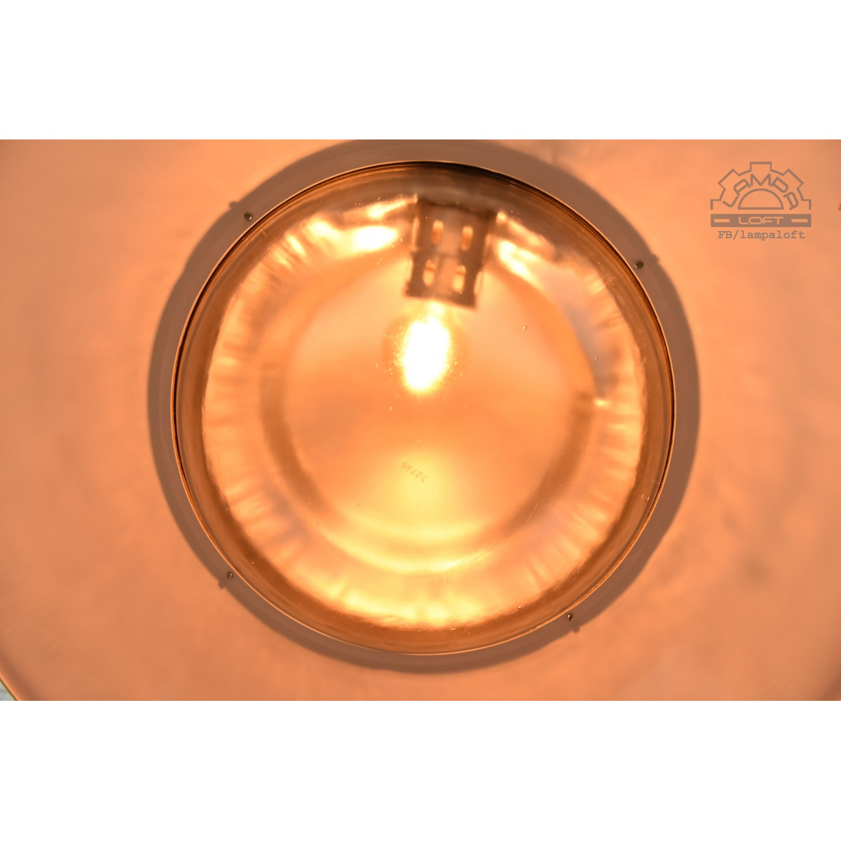 Lampa przebiła wielkością wszystkie lampy jakie do tej pory mieliśmy w pracowni. Średnica 68cm !!!, wysokość 60cm. Waga 13kg. Długość całej wiszącej lampy z przewodem i łańcuchem 250cm. Wyprodukowana przez Zakłady Metalowe Predom-Mesko w Skarżysku-Kamiennej. Oprawka na zwykłą żarówkę E27 max. 100W Przedostatnie zdjęcie pokazuje lampę bez klosza. Ostatnie zdjęcie lampę przed odrestaurowaniem